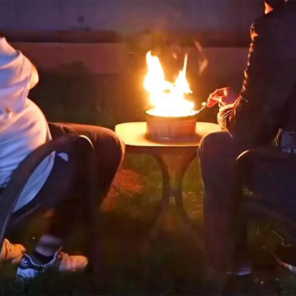 Портативный костёр использует нетоксичный переработанный соевый воск, что означает отсутствие дымного запаха, а также низкое содержание сажи.