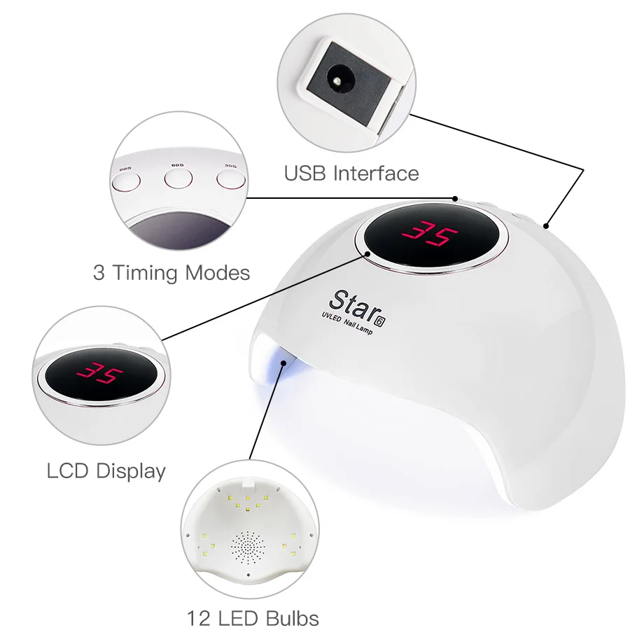 Характеристики изделия: бренд: ROSALIND Название: светодиодный/УФ лампа для ногтей мощность: 24 Вт цвет: белый светодиодный S: 12 светодиодный лампы Длина волны: 365 + 405 нм посылка список: 1. светодиодный/УФ лампа для ногтей 2. USB линия 3. руководство пользователя шаг за шагом: 1. подключите usb-кабель. 2. Нажмите режим синхронизации, который вам нужен, 30 s, 60 s или 90 s. 3. Инфракрасные датчики сразу же активируют лампу, когда вы вставляете руку. 4. Подождите несколько минут, и он высохнет. 5. Лампа выключится, когда вы вынете руку. 1. Почему гель для ногтей не сушит светодиодный/УФ лампа для ногтей? Существует слой плавающего геля после того, как лампа для полировки ногтей, это нормальное явление, а не быть сухим. Не трогайте вручную, вы можете использовать очищающее средство или спирт для удаления плавающего геля. Нанесите верхнее покрытие и вылечите. Отделки. 2. Почему светодиодный/УФ-лампа для ногтей не высокая температура? Фактор для сушки геля для ногтей-это не температура, а ультрафиолетовое излучение лампы.