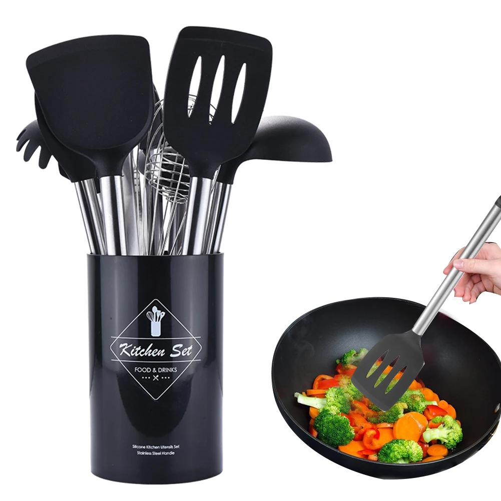 9 штук (8 кухонных принадлежностей + кухонное ведро для хранения утвари с цветной упаковкой)