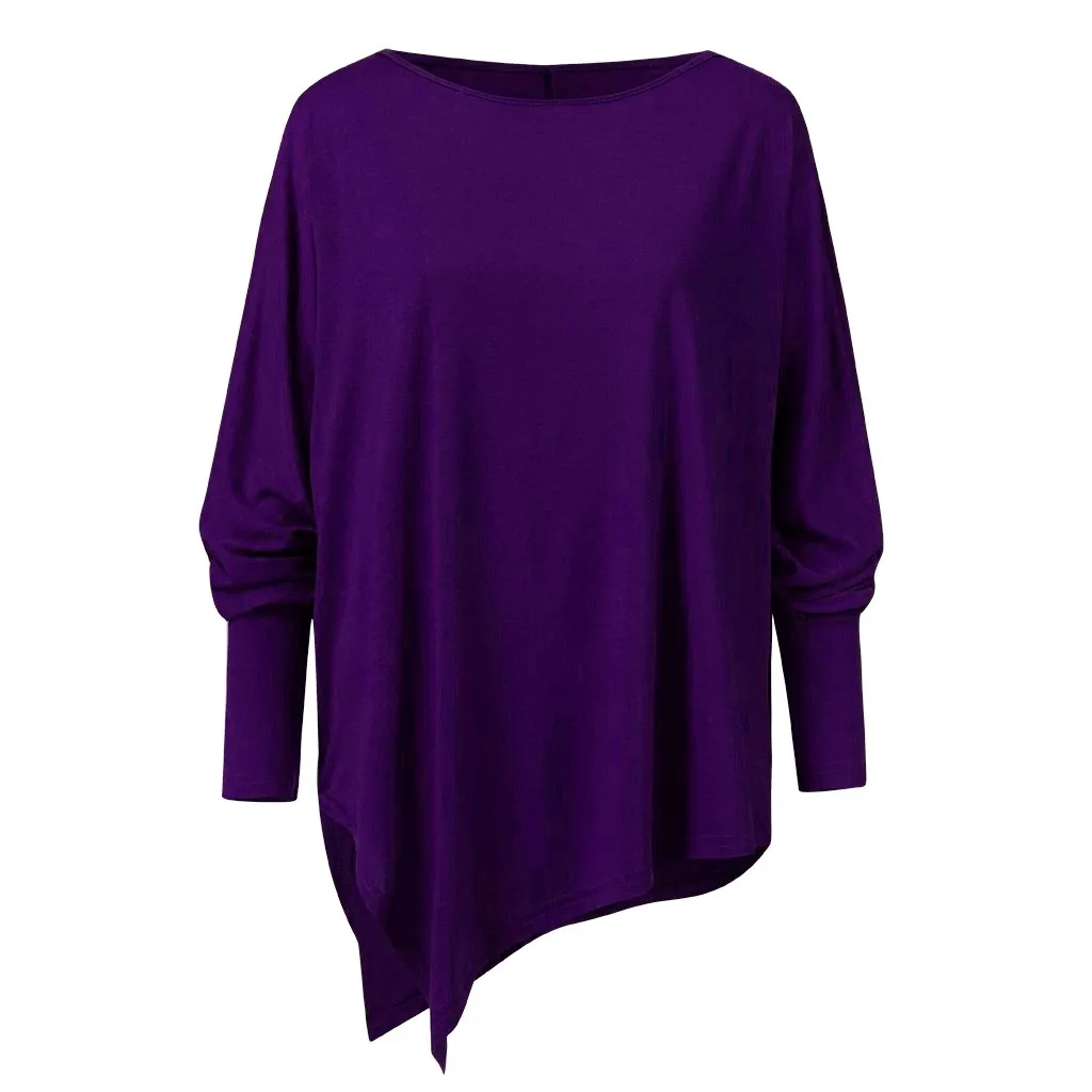 Женская Повседневная Блузка, однотонный Асимметричный свитшот с длинными рукавами и принтом, пуловер для девочек, женская одежда
