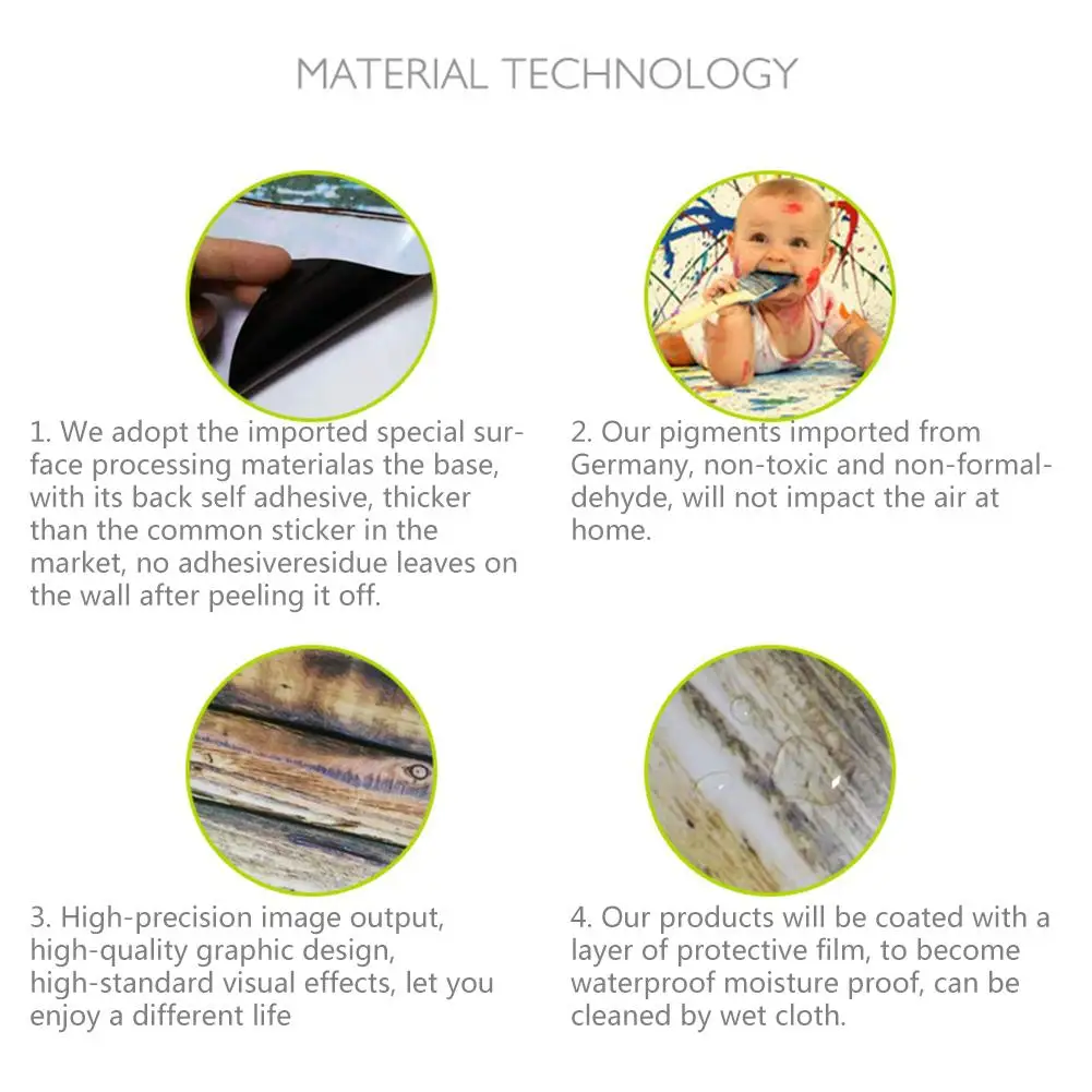 1. Самоклеющиеся наклейки: воздух, почищенный импортной экологической цветной пастой, с первоклассным эмалированием, простота и модная Имитация дерева.Если у вас есть недовольство или сомнения по поводу нашей продукции, пожалуйста, свяжитесь с нами через новости покупателя в первый раз, и мы дадим вам удовлетворительное решение в течение 24 часов.