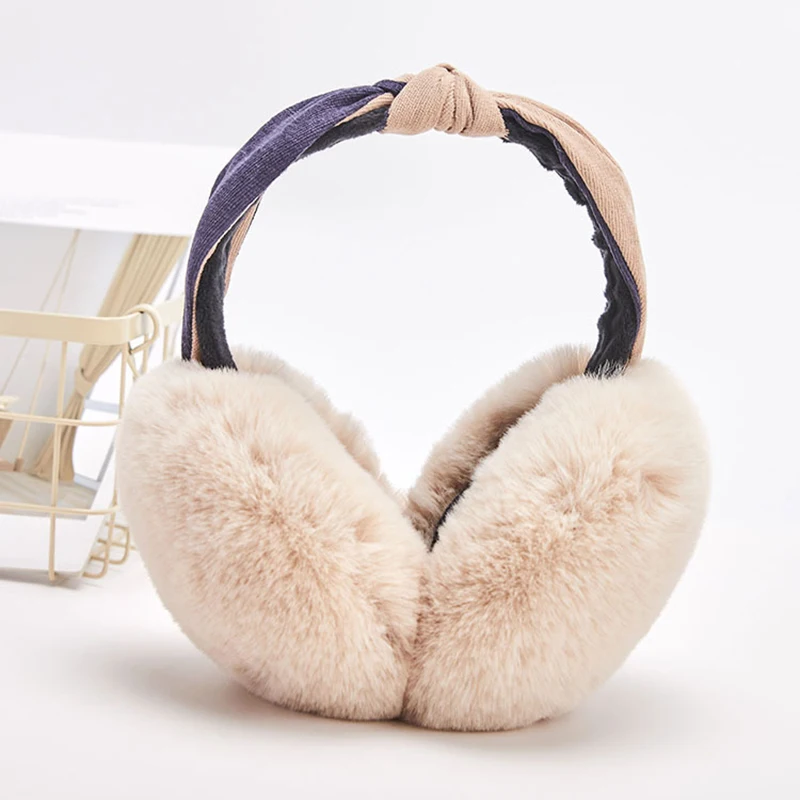 Двухцветная головная повязка, складные наушники из искусственного кроличьего меха, плюшевые наушники, регулируемые