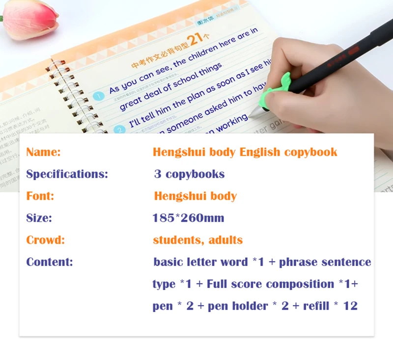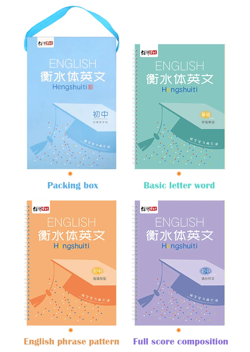 3 книги 3D английские символы многоразовые паз каллиграфическая пропись стираемая ручка узнать hanzi взрослых арт письменной форме книги.