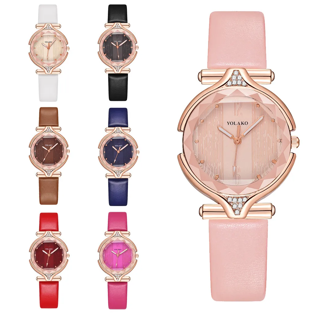 YOLAKO женские часы повседневные розовые с кожаным ремешком кварцевые наручные часы женские часы с кристаллами подарки zegarki damskie часы женски