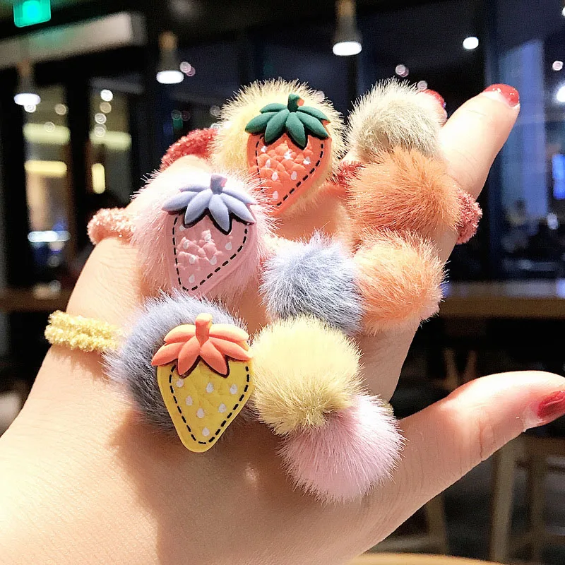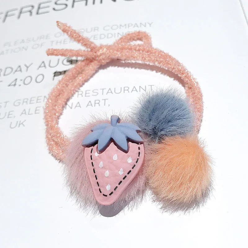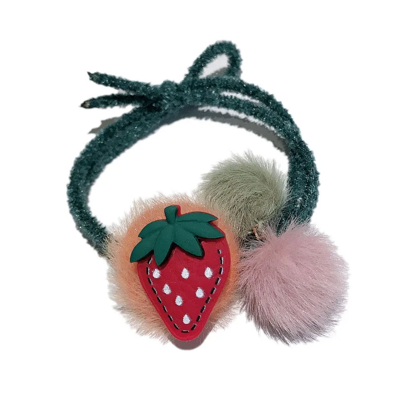 Милая Клубничная канатная Резиновая лента для волос с искусственным мехом, мягкое плюшевое кольцо для волос с фруктами