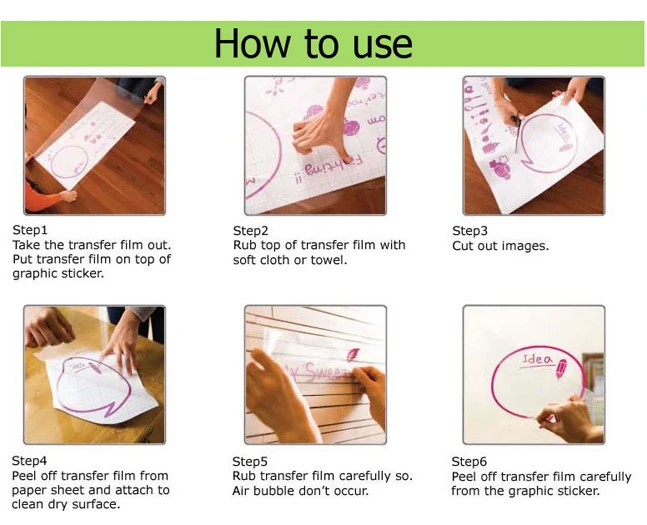 Примечание: Когда вы получаете наклейку, она свернута в трубку. Тем не менее, легче работать, когда наклейка плоская. Поэтому, пожалуйста, используйте твердые плоские вещи, чтобы положить их на плоскость. Начните приклеивать к стене, когда она достаточно ровная. И выполните следующие действия: