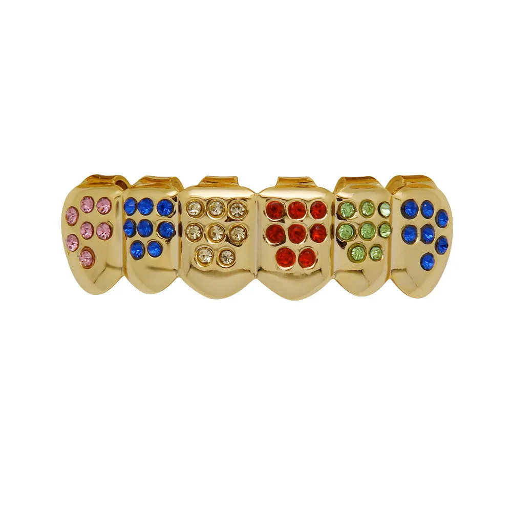 Модные вечерние брекеты в стиле хип-хоп, Радужный Набор для гриля в стиле хип-хоп, медная Кепка, ювелирное изделие