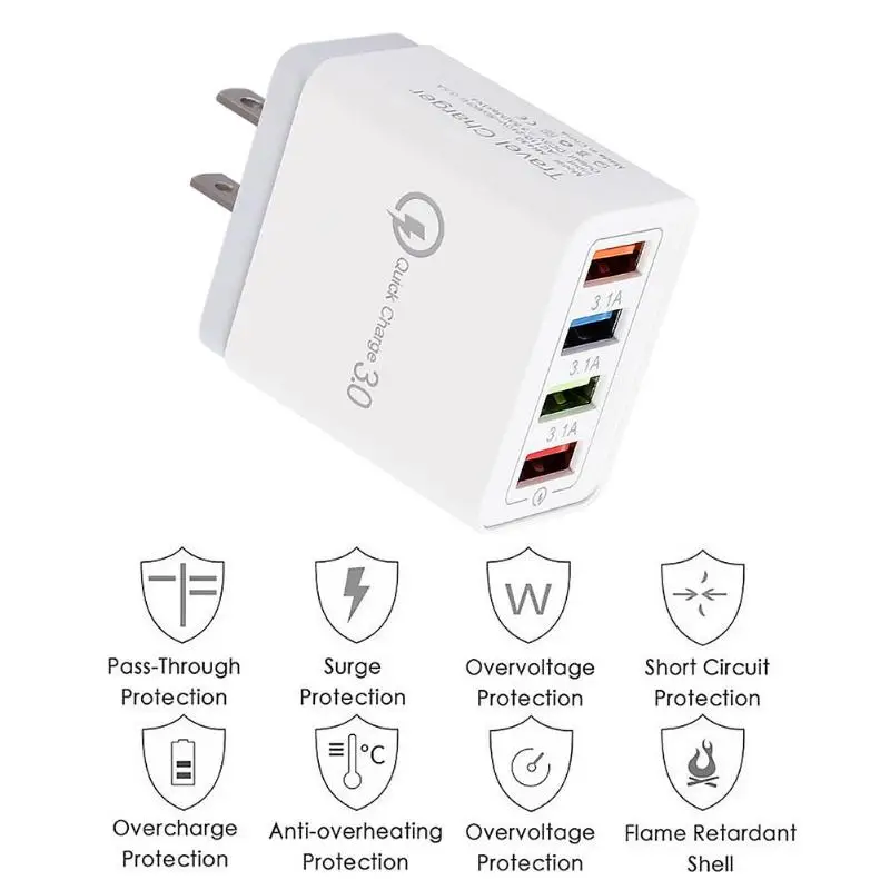 Портативный 4 порта Smart USB цвет зарядное устройство 3A быстрой зарядки телефон разъем для зарядки электроники с разъемами стандартов США ЕС переходник Универсальный