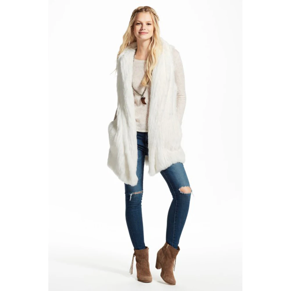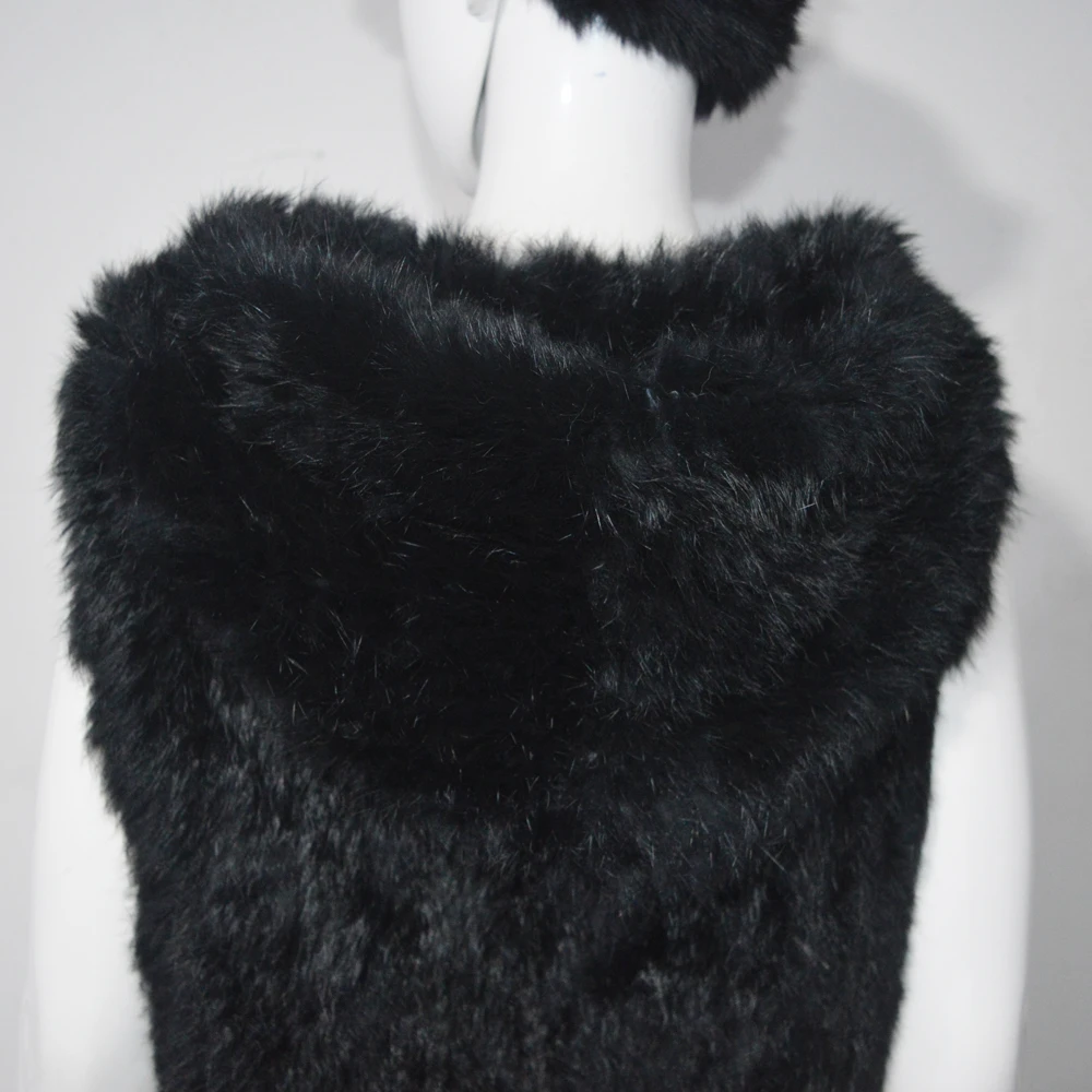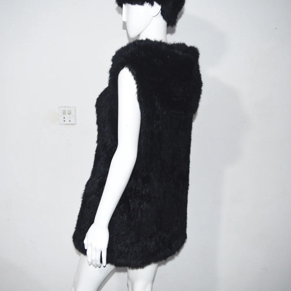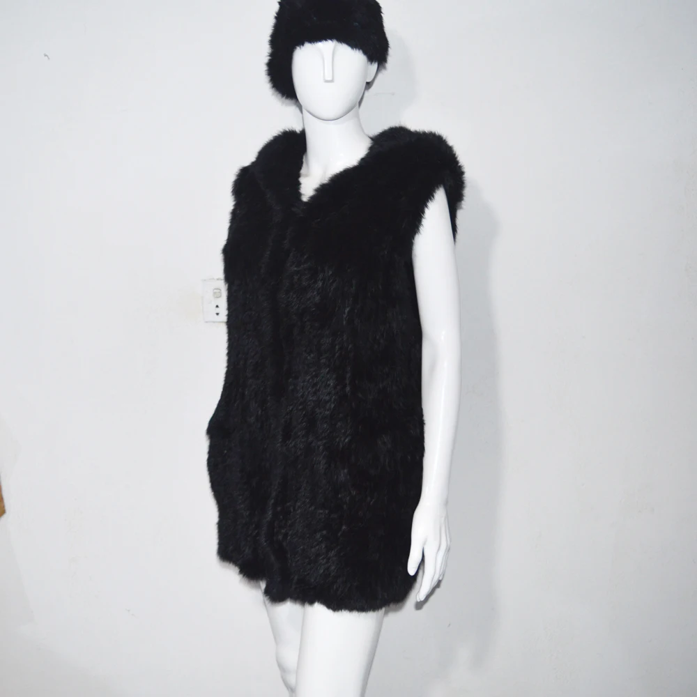 Название:AU326 австралийская Милая Дамская зимняя повседневная дизайнерская Толстая вязаная черная жилетка из кроличьего меха с большим капюшоном