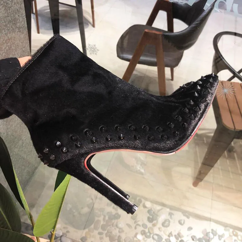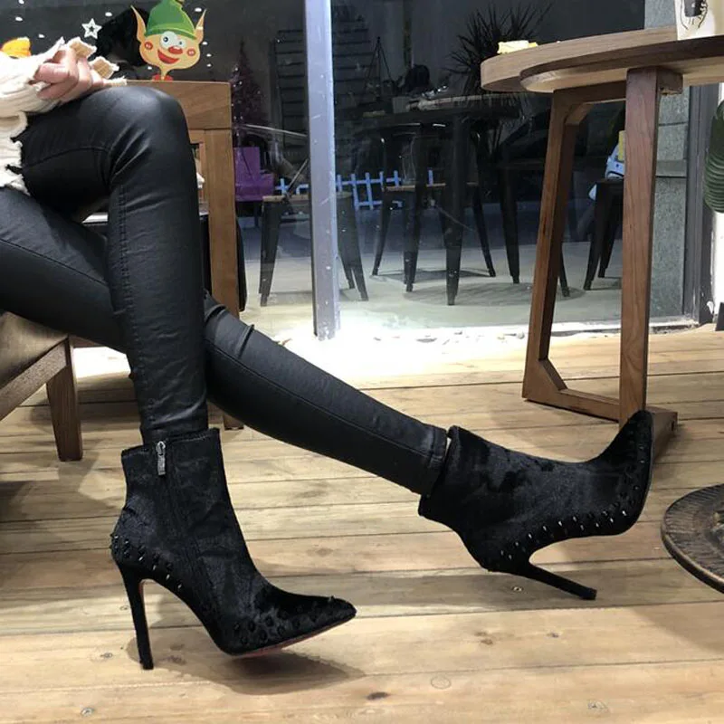Ботинки martin с заклепками в стиле панк; женские брендовые ботинки с острым носком; ботинки «Челси» на высоком каблуке с шипами; botas; обувь из плюша; зимние Rzm9-22