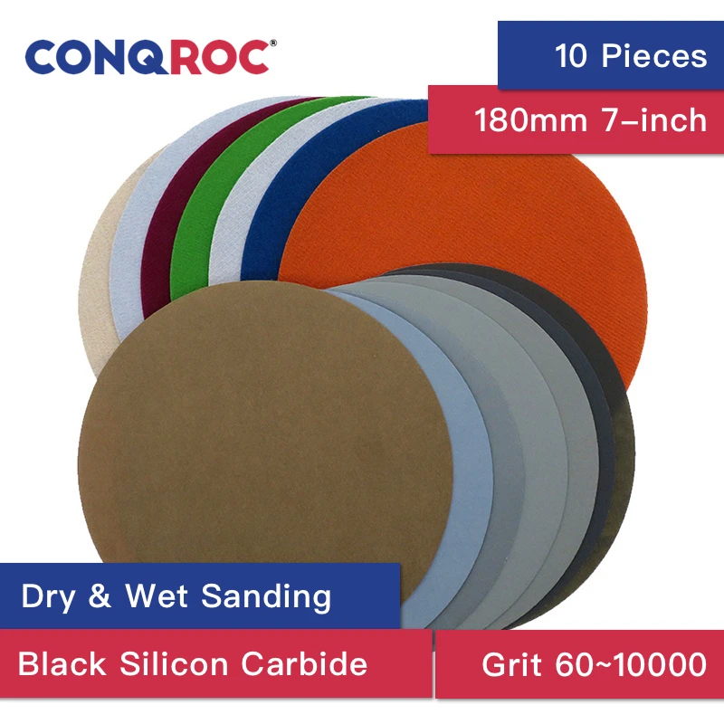 -Диаметр: 180 мм (7 дюймов) -Задняя часть: крюк и петля -Зернистость: 800 #, 1500 #, 2000 #, 3000 #, 5000 #, 7000 #, 10000 # -Упаковка в чехол: 10 шт.