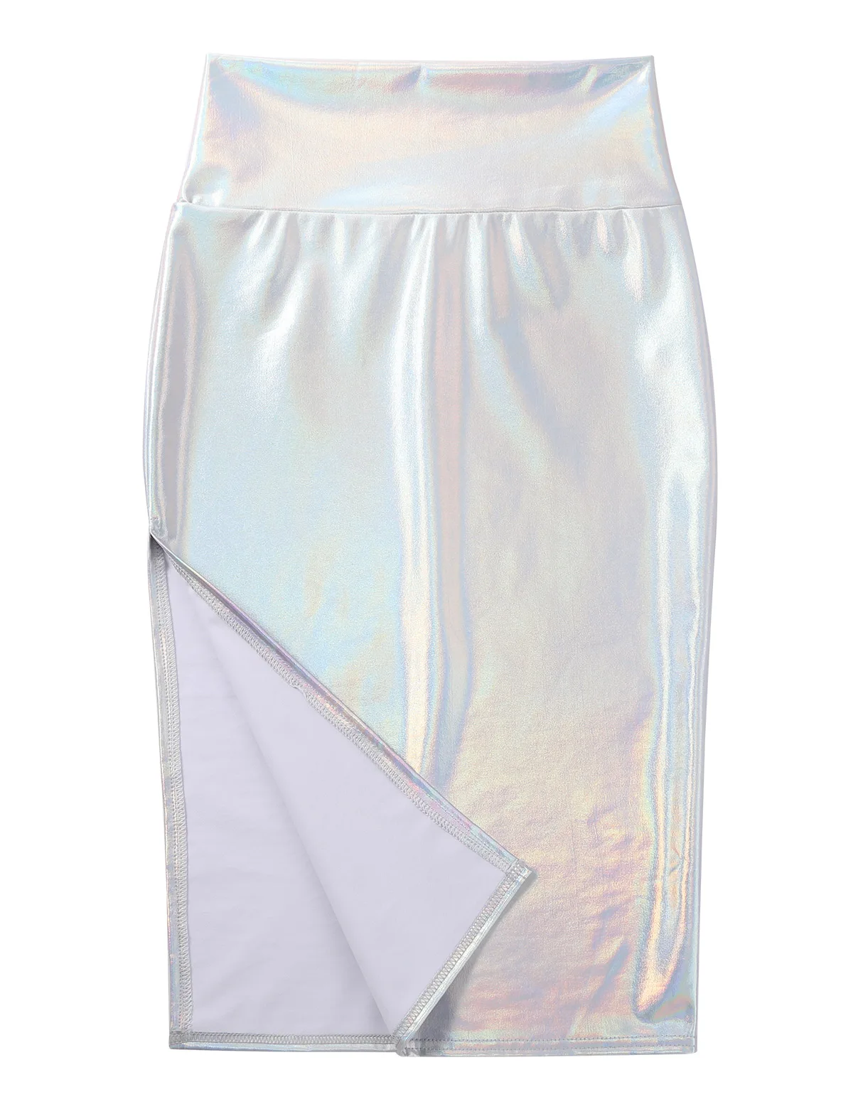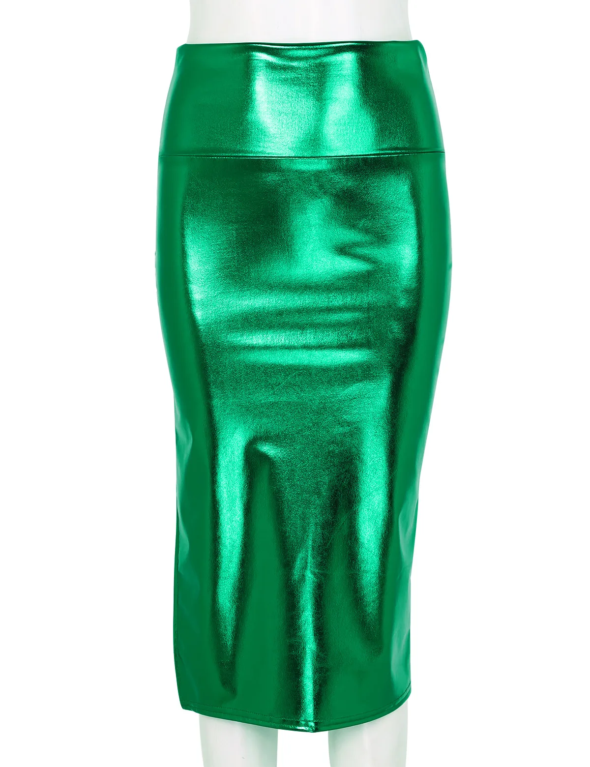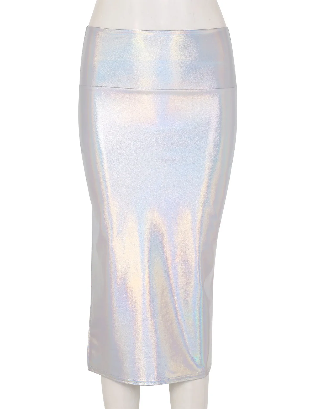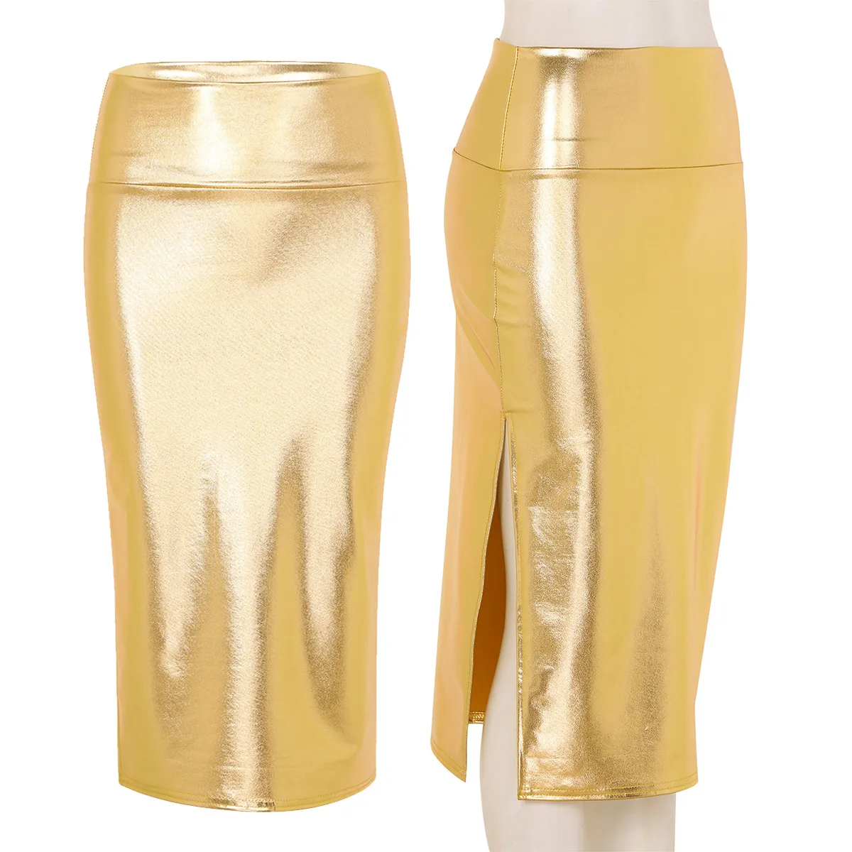 Женская модная блестящая металлическая облегающая юбка-карандаш средней длины.