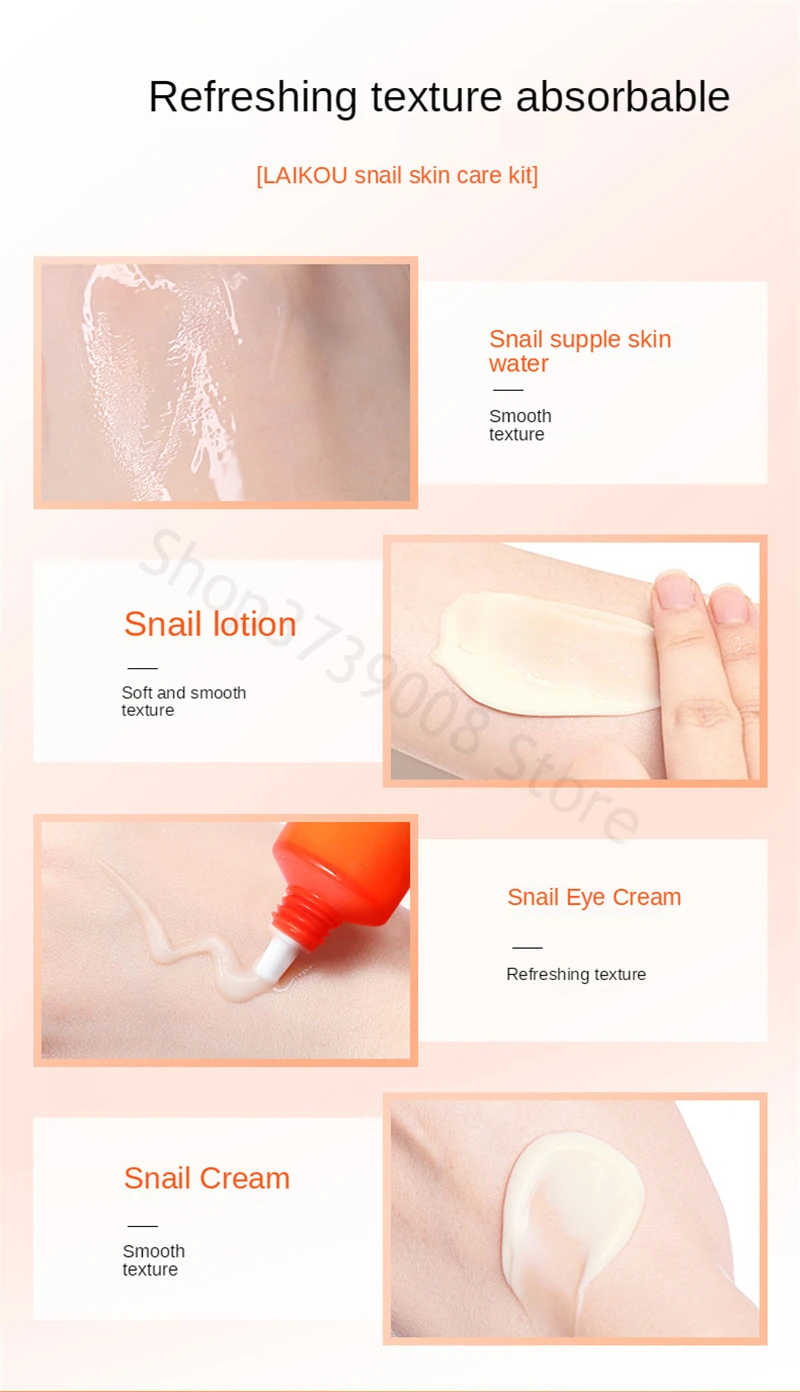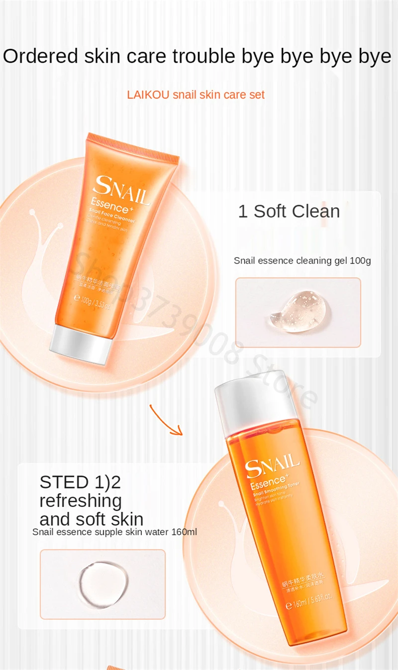 LAIKOU 5 шт./лот улиточный Восстанавливающий набор по уходу за кожей лица моющее средство + уход за кожей лица увлажняющий крем + Тонер + лосьон + крем для кожи вокруг глаз, против старения, морщин,