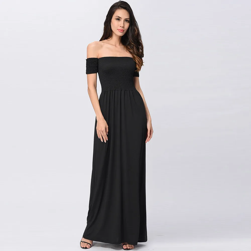 Женское летнее пляжное праздничное вечернее длинное плиссированное платье с открытыми плечами