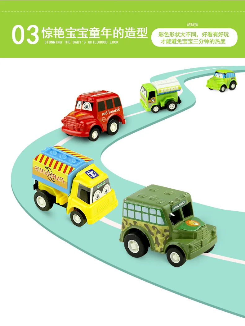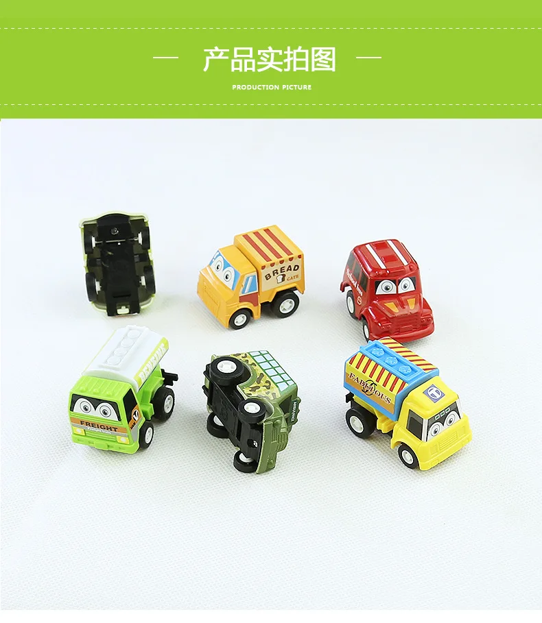 -Наименование товара: 6 шт./компл., мультяшная Милая Модель гоночного автомобиля, игрушки для детей, для мальчиков, мини-пластик, оттягивающийся автомобиль, грузовик, горячие колеса, рождественский подарок