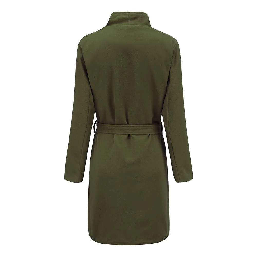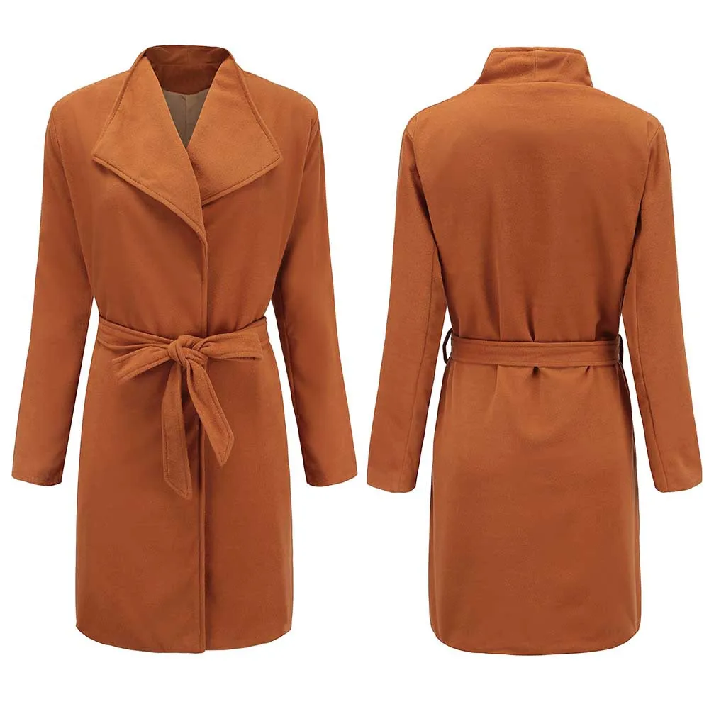 Зимнее теплое Женское шерстяное пальто, Тренч, куртка, пальто с поясом, верхняя одежда
