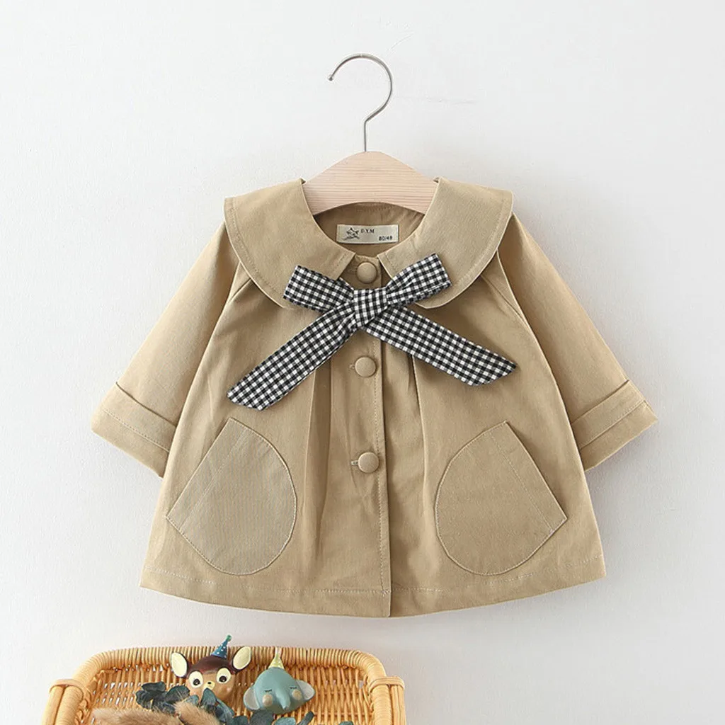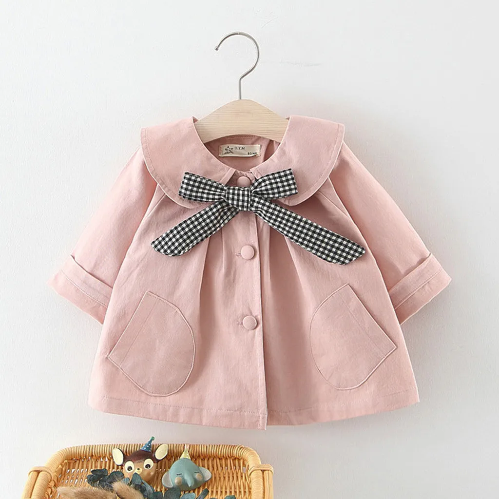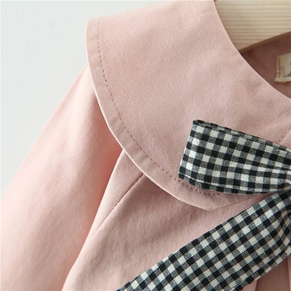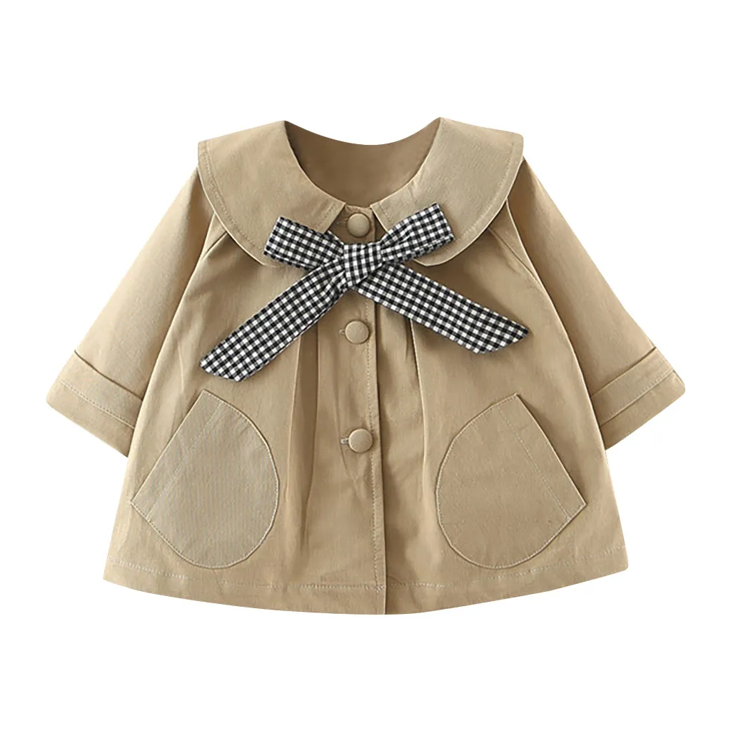 Однотонное ветрозащитное пальто в клетку с кукольным воротником для маленьких девочек; Верхняя одежда; Повседневная одежда; Зимний детский плащ