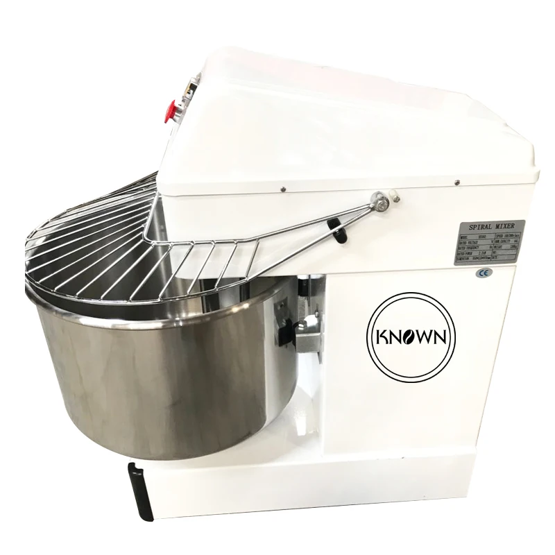 5. Спиральная мешалка для смешивания высокого глютенового теста, хорошая экспансивная сила теста, экономия затрат на производство, два скоростных механизма, бочки могут вращаться в положительном инверсии, удобная эксплуатация, свободно контролировать время смешивания.