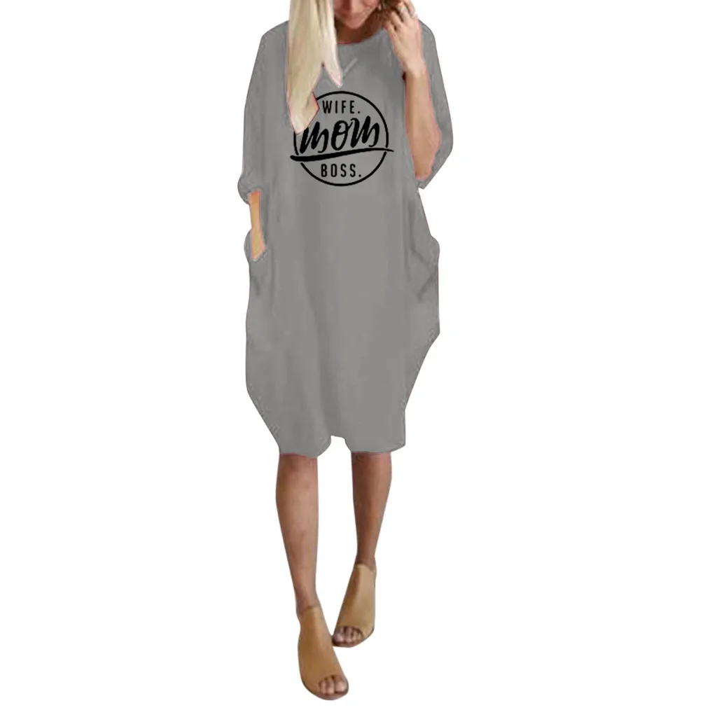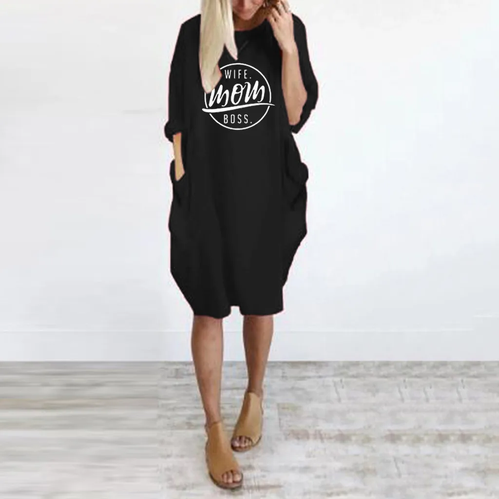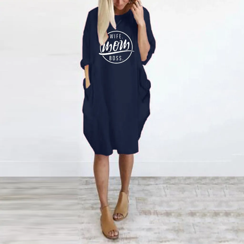 Женское летнее Короткое мини с длинным рукавом и принтом Платье