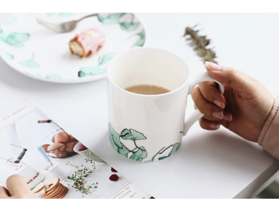 Размер: тарелка: 8 дюймов чашка: 400 мл Материал: Керамика Вес: 500 г Цвет: зеленый, желтый Посылка: 1 шт.