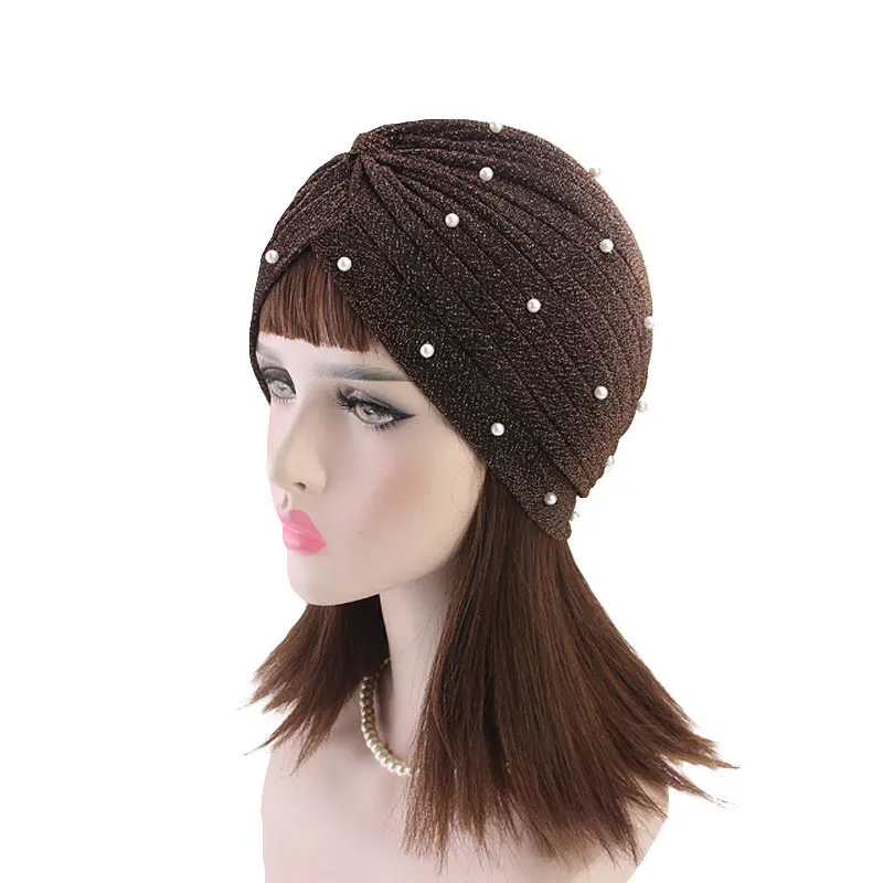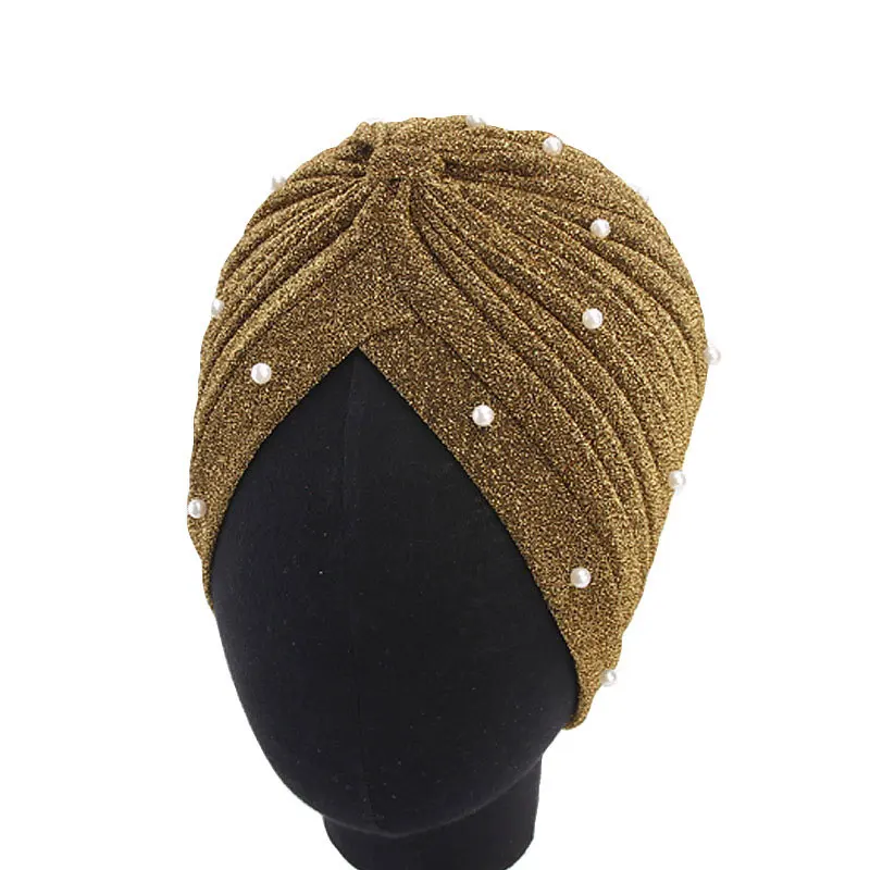 Хиджаб для мусульманок, блестящий тюрбан, золотой Блестящий Жемчуг, украшенный бусинами, обруч на голову, индийская Кепка