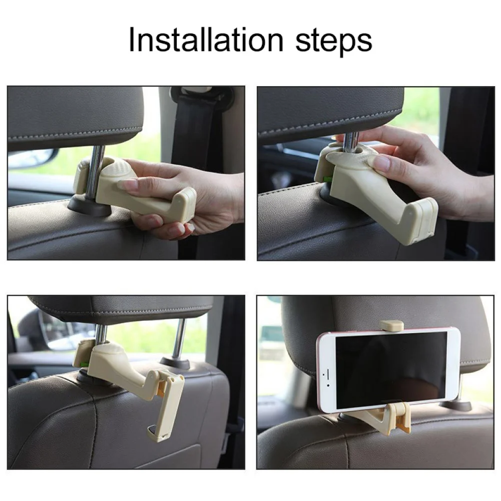 Особенности:Универсальный держатель для телефона, крепление на подголовник, подвесной крючок