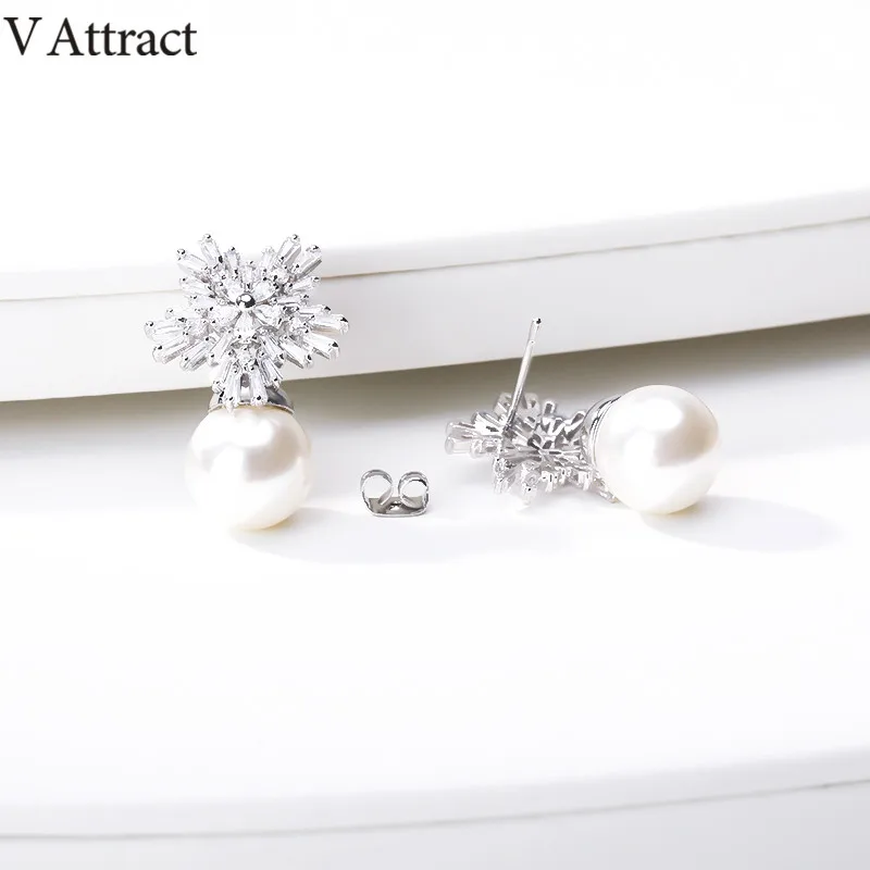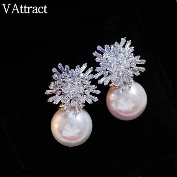 V притягивающие очаровательные серьги-гвоздики со снежинками и кристаллами, женские модные серьги ручной работы с жемчугом, милые свадебные ювелирные серьги, набор