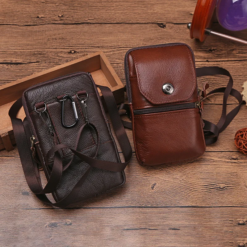 Men's Chest Bag Simple Retro Versatile Casual Leather Mini Waist Bag Men Purse Double-deck Cellphone Waist Packs Male