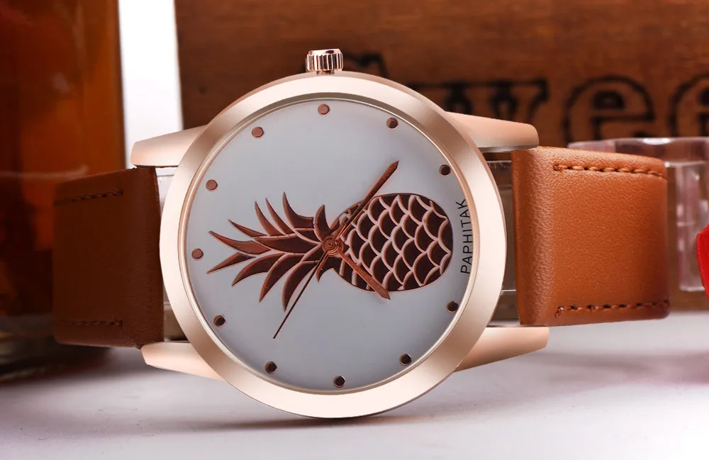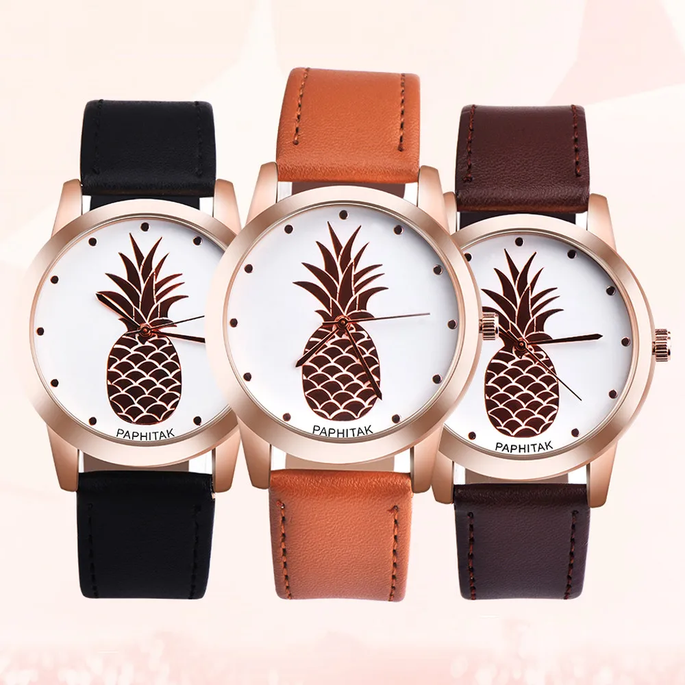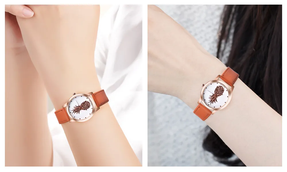Унисекс Wo для мужчин s часы ананас узор искусственная кожа кварцевые наручные часы повседневное дамы часы zegarki damskie часы женски