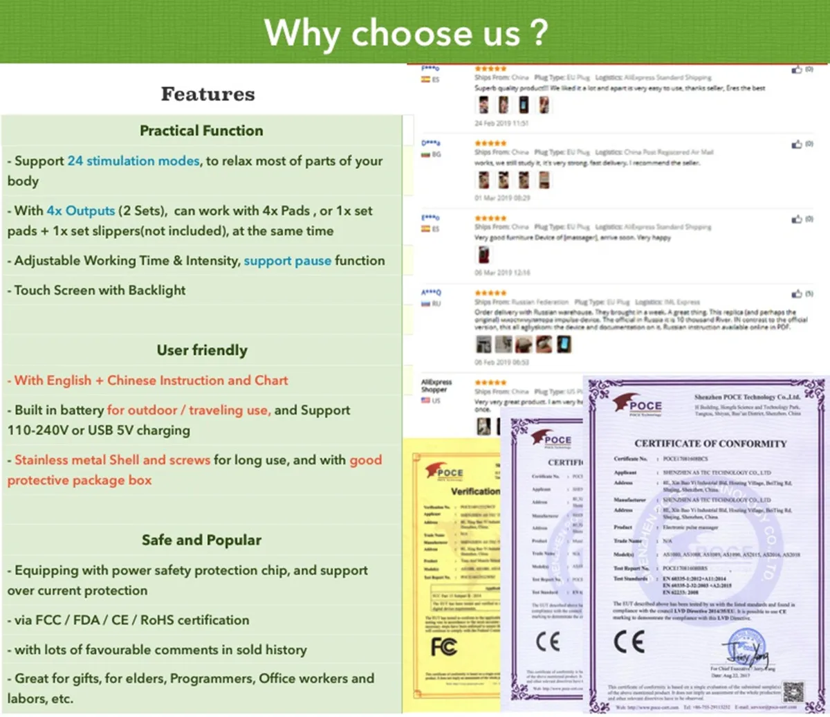 -2 выхода: 2 выхода (A,B канал) изолированы и имеют одинаковую мощность, позволяют одновременно применять 2 набора подушек в различных областях. Кроме того, вы можете поделиться с друзьями или семьей, чтобы провести фантастический массаж вместе.