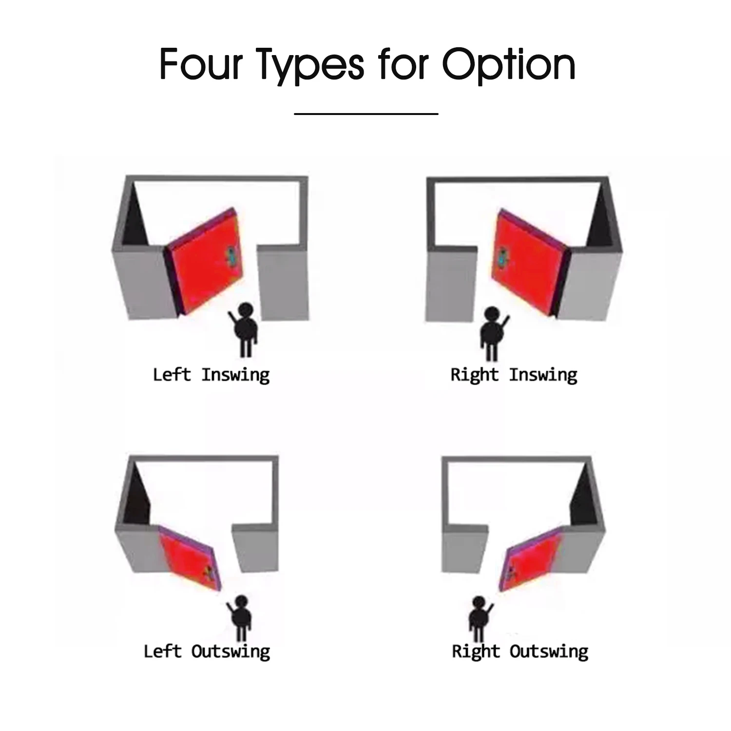 Перед покупкой, пожалуйста, убедитесь, что вы открываете двери и какие виды замков (правая ручка снаружи/правая ручка внутри/левая ручка снаружи/левая ручка внутри) вам нужно.