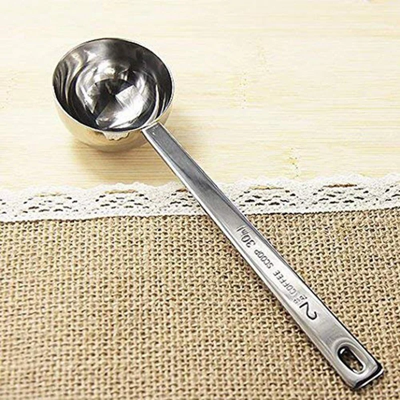 Ложка для кофе из нержавеющей стали, 2 мерная столовая ложка для кофе совок, 30 мл металлические Длинные ручки ложки для кофе мерные ложки,