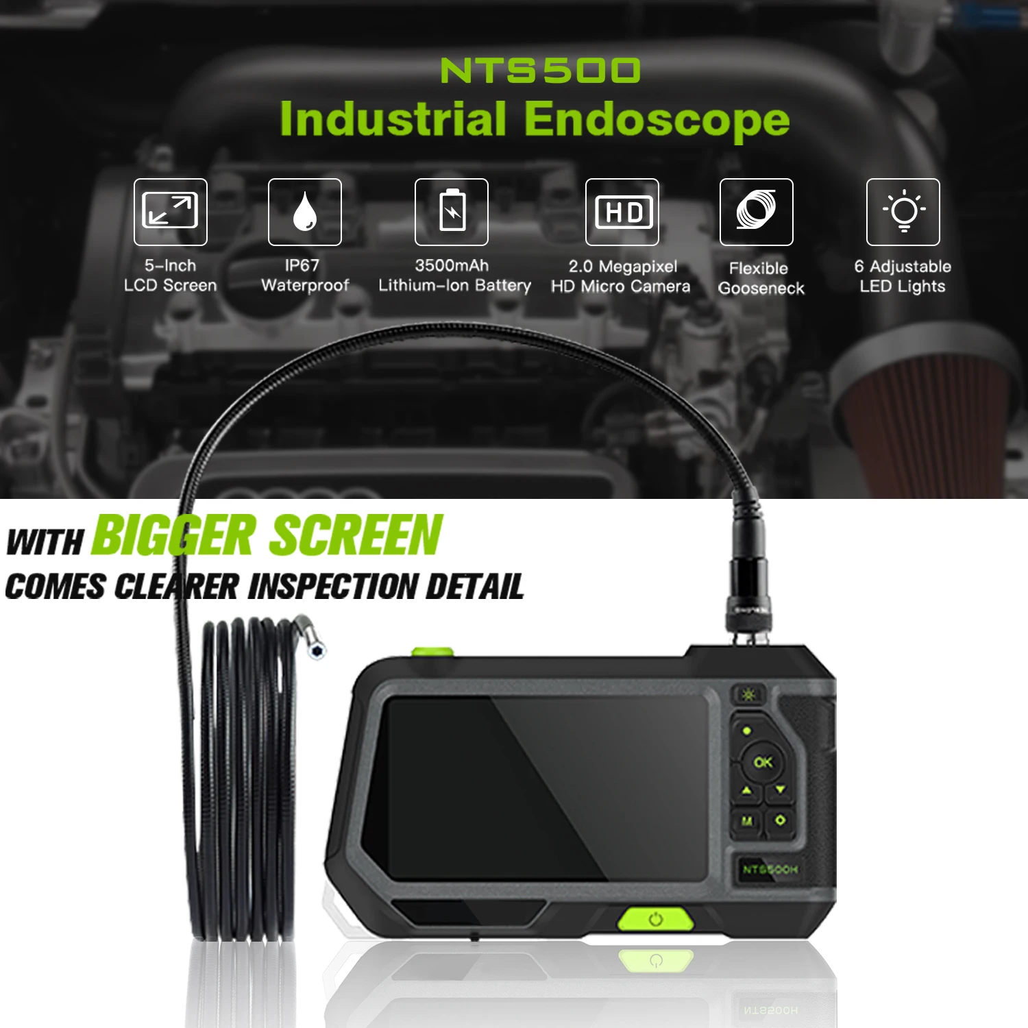 Компактная Структура: портативный эндоскоп является портативным и прочным, его общая Усиленная структура s обеспечивает стабильность при повышенной нагрузке.