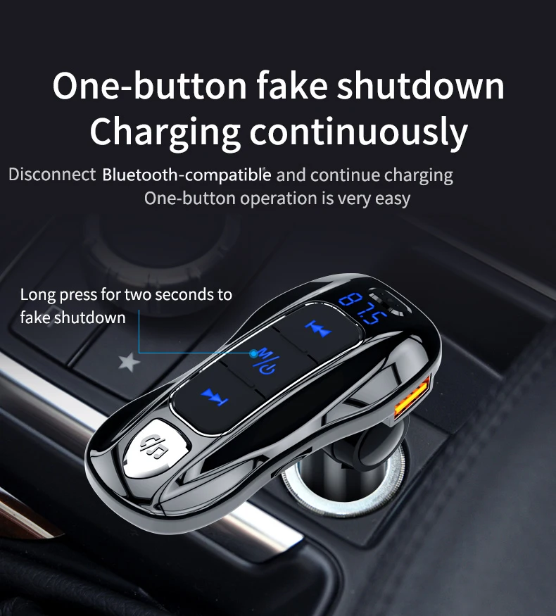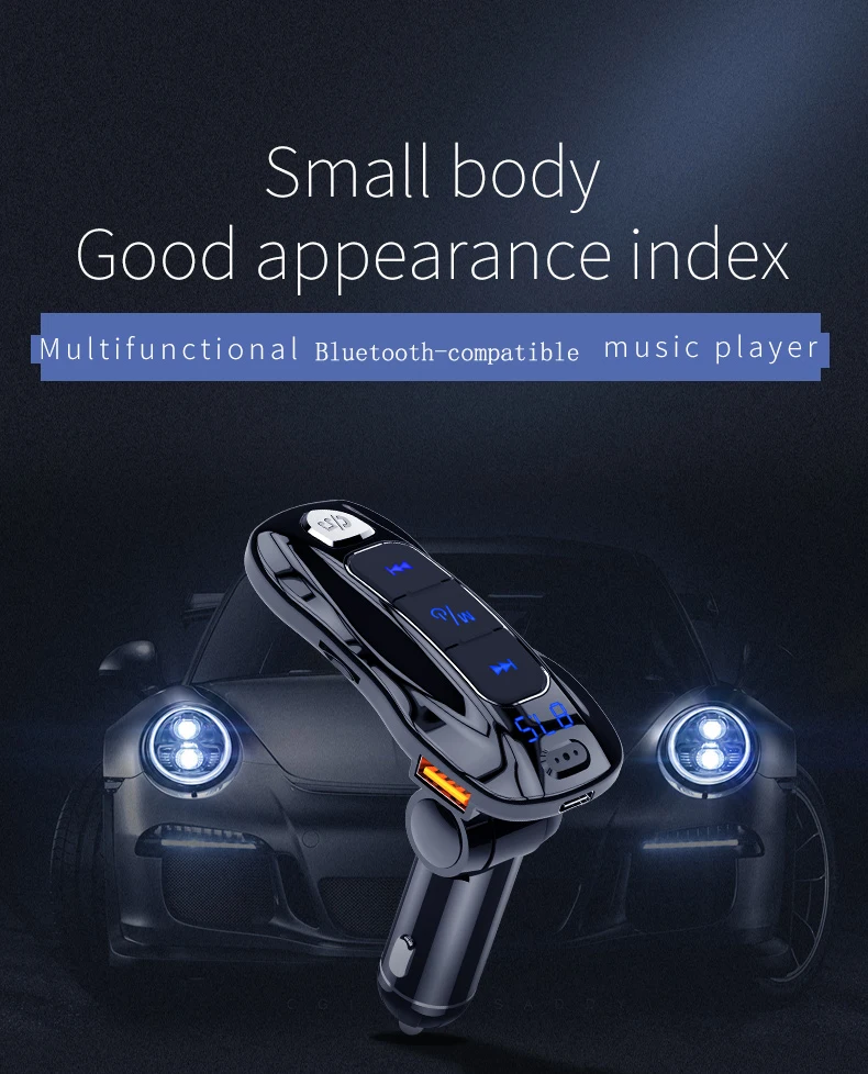 2. Red LED Display3. Support PD3.0 fast charge output4. SupportUSB Type -C /USB Power Delivery(PD)3.0 /Quick Charge 3.0/2.0 /Huawei FCP/SCP/Samsung AFC/USB BC1.2 DCP /Apple 2.4A charging regulation 5. FM Transmitter6. Support U disk playing music7. Support TF card playing music8. Support WMA,MP3,WAV, FLAC format.9. Automatic power off memory function10. Support A2DP, AVRCP,HFP,HSP 11. bt V5.012. bt Hands free13. Support bt stereo music DSP technology14. Battery voltage detection15. Press any key to boot after fake-off Specifications: Rated operating voltage:12-24VLimit working voltage:10~26VPD output power:18WOperating temperature:0~50°CSupport playback format:MP3 / WMA / WAV/ FLACSignal to noise ratio:>60dBBattery voltage error:±1VPD3.0:5V/3A 9V/2A 12V/1.5AUSB1/ USB2:5V/2.4Abt version:Version 5.0bt sound processing:With DSP technology andA2DP(Advance Audio Distribution Profile)bt transmission distance:< 10Mbt microphone effective distance:0.5~2MFM transmission frequency:87.5~108MhzTransmit FM mode:Stereo digital PLL lock frequency
