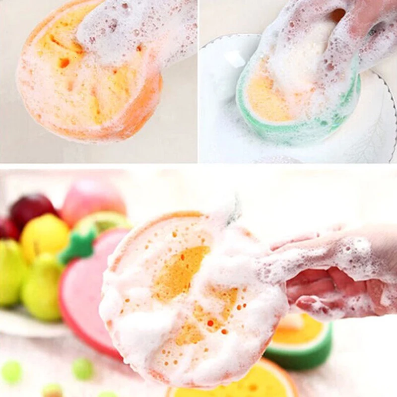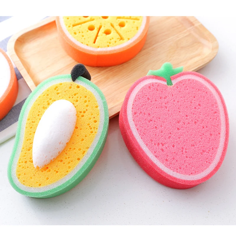 Креативная плотная губчатая ткань с фруктами, сильная обеззараживание, моющее полотенце, антипригарная масляная губка, кухонные чистящие средства