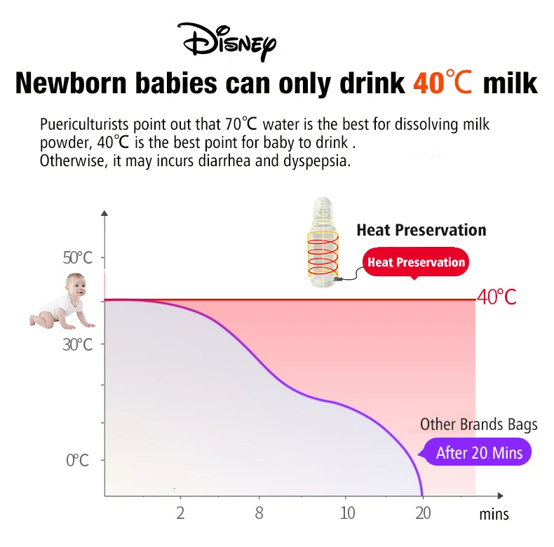 Может держать молоко в течение 40 ℃ в течение 5 часов с 10000mA power bank.