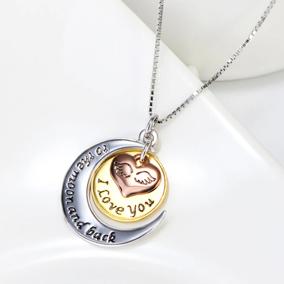 -925 пробы Серебряное ожерелье; -Луна и сердце дарят вам ощущение тишины; -Подарок для мамы и подарок для пары