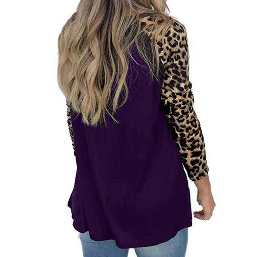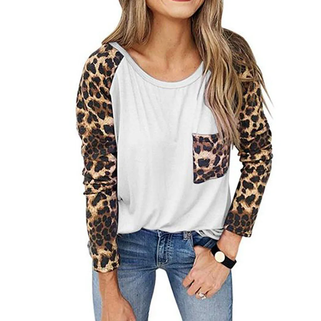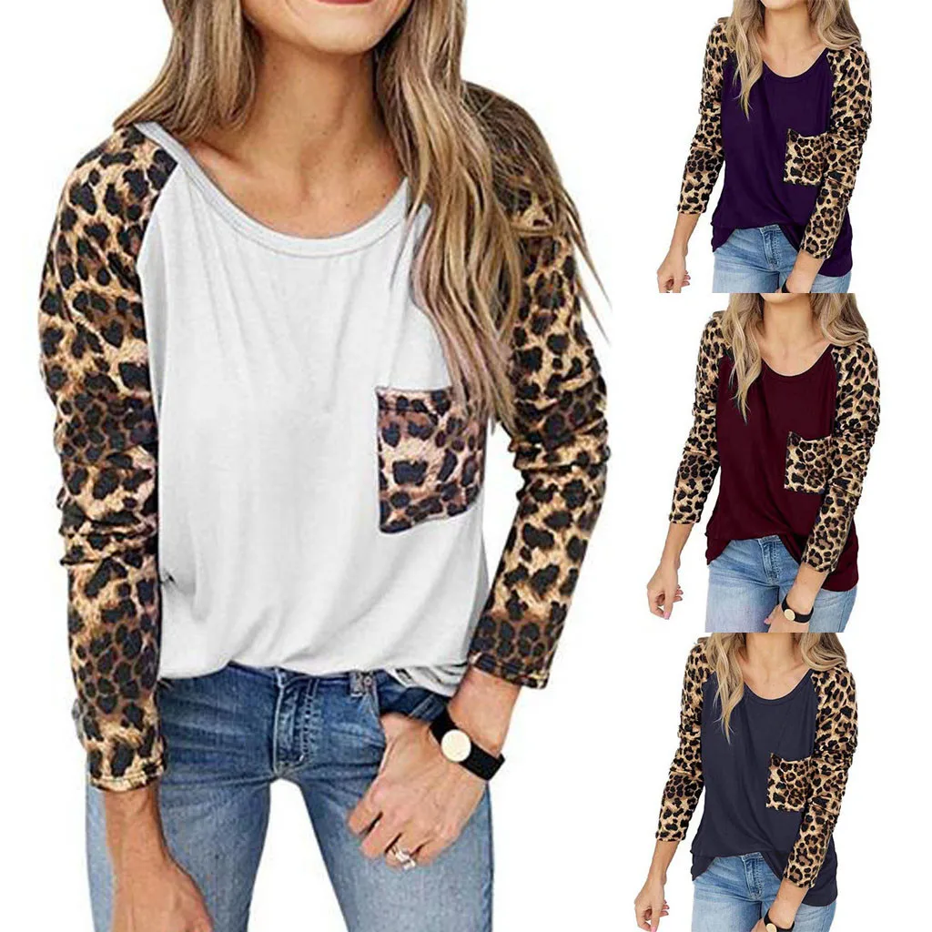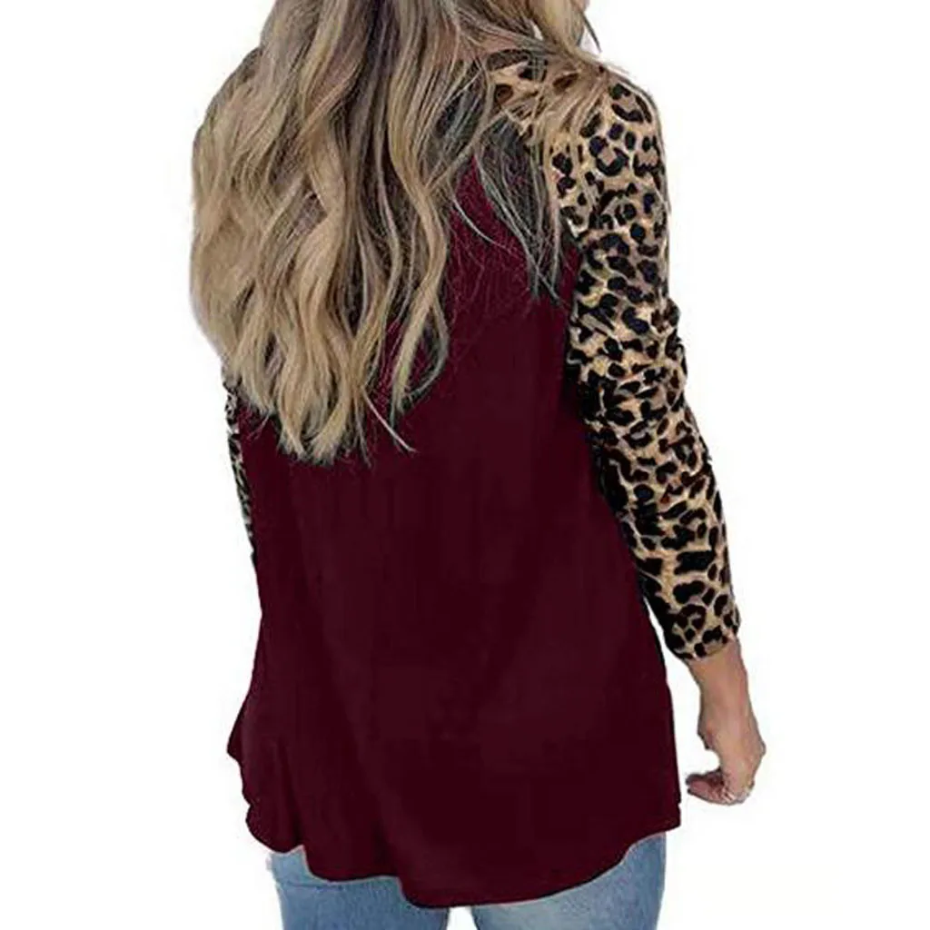 Женский пуловер с леопардовым принтом, свободные топы, свитер, Повседневная блузка, футболка