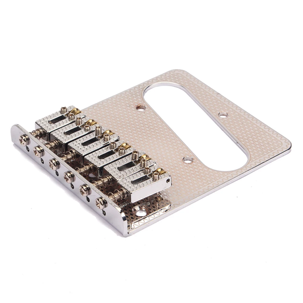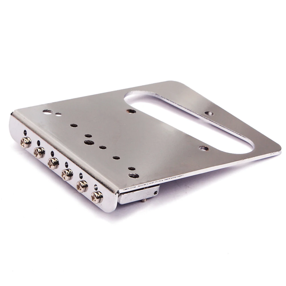 Это хромированная для электрогитары мостовая пластина. Эта мостовая пластина имеет 6 Регулируемых точек крепления. Это красивые металлические детали, отлично подходят для электрогитар solidbody, гитар для сигарет и многого другого!