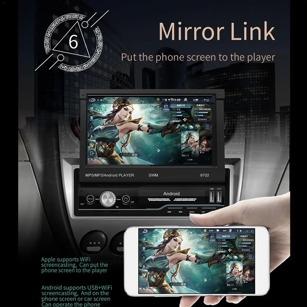 1. 7 дюймов 1 DIN 1080P HD 1024*600 разрешение автомобиля радио MP5 плеер складной емкостный сенсорный экран.3. Если вы не уверены, подходит ли эта модель для вашего автомобиля или нет, вы можете обратиться в нашу службу поддержки клиентов за помощью.