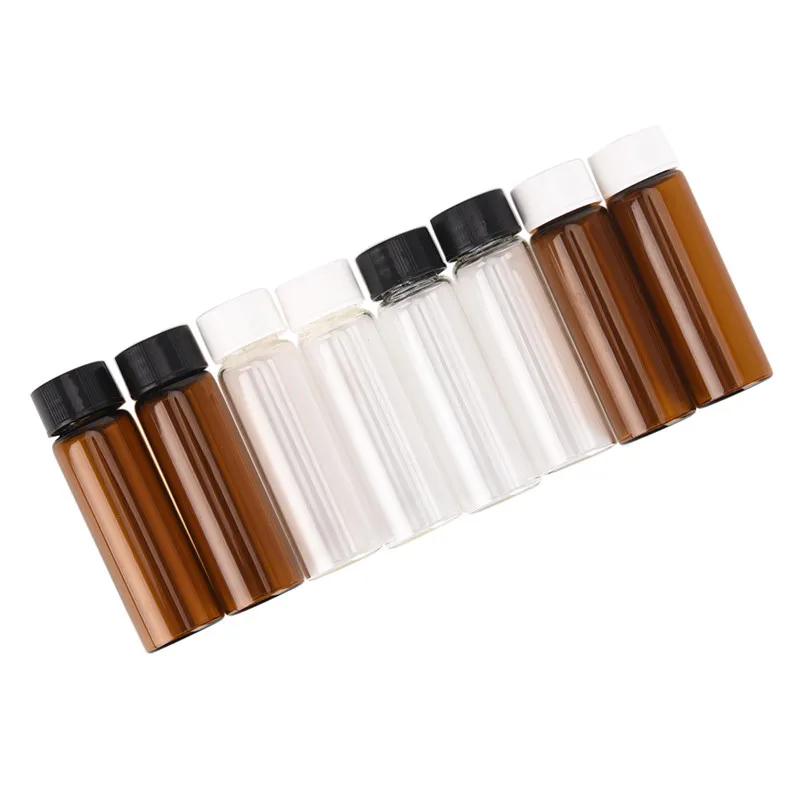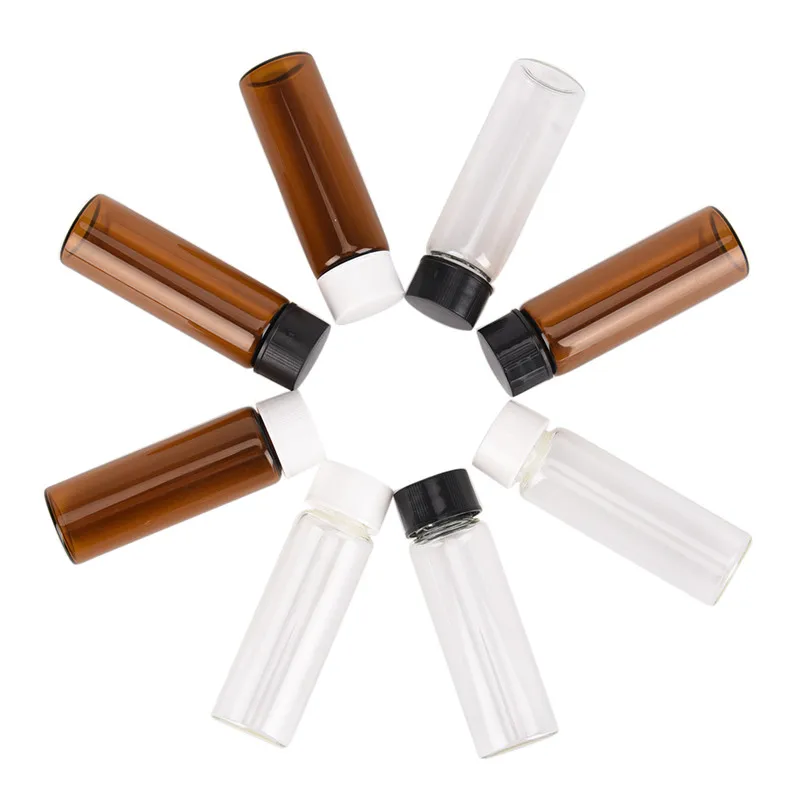 Мини стеклянная бутылка для образцов с черной/белой винтовой крышкой