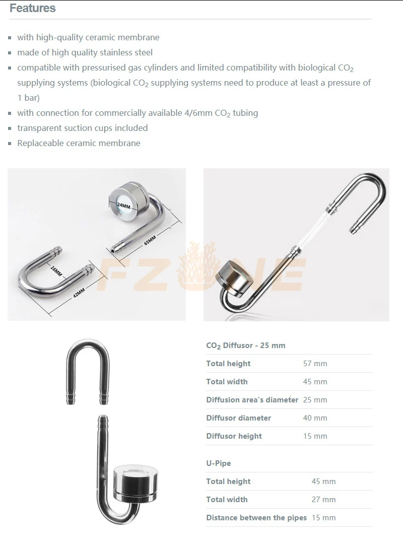 Изготовлен из высококачественной нержавеющей сталиЭффективное распыление CO2 через керамическую мембрануВизуально очень привлекательныйНеобходимые присосками и u-образная труба являются includedcСменная керамическая мембранаПредставить:Посылка включает: