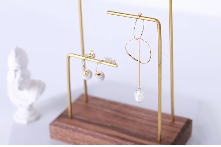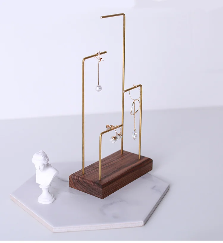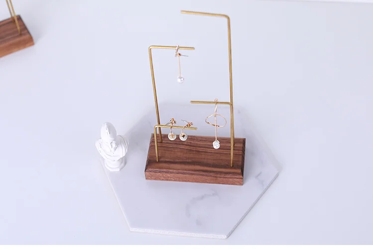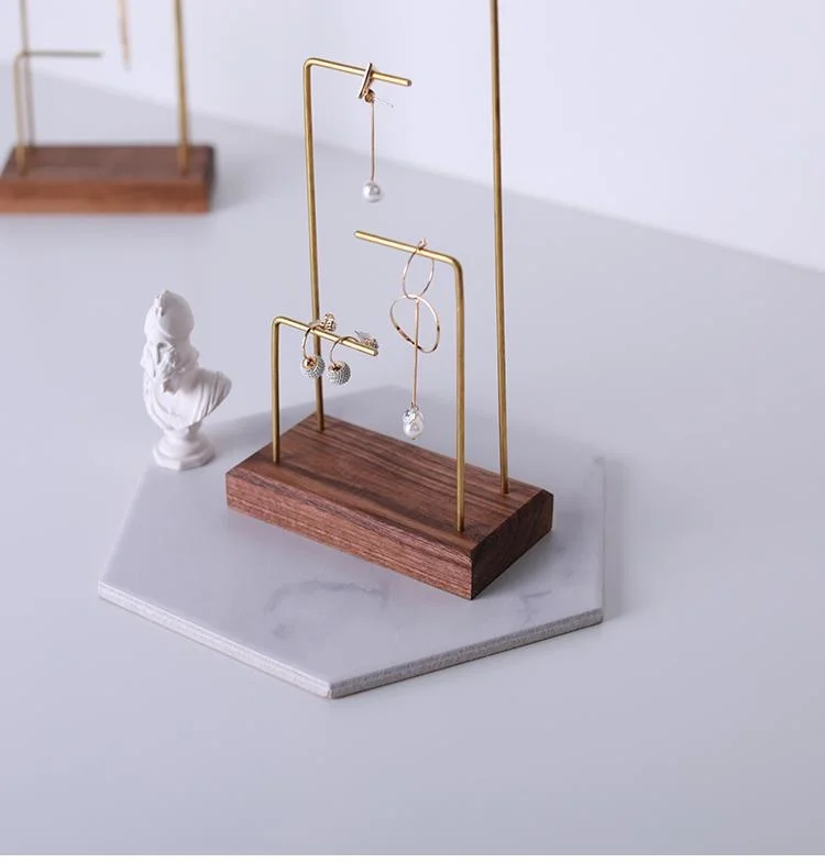 Showcase Wood Black Walnut Metal Pole Necklace Rack Table Jewelry Display Props Earring Hook Stand Earrings Ear Nail Holder