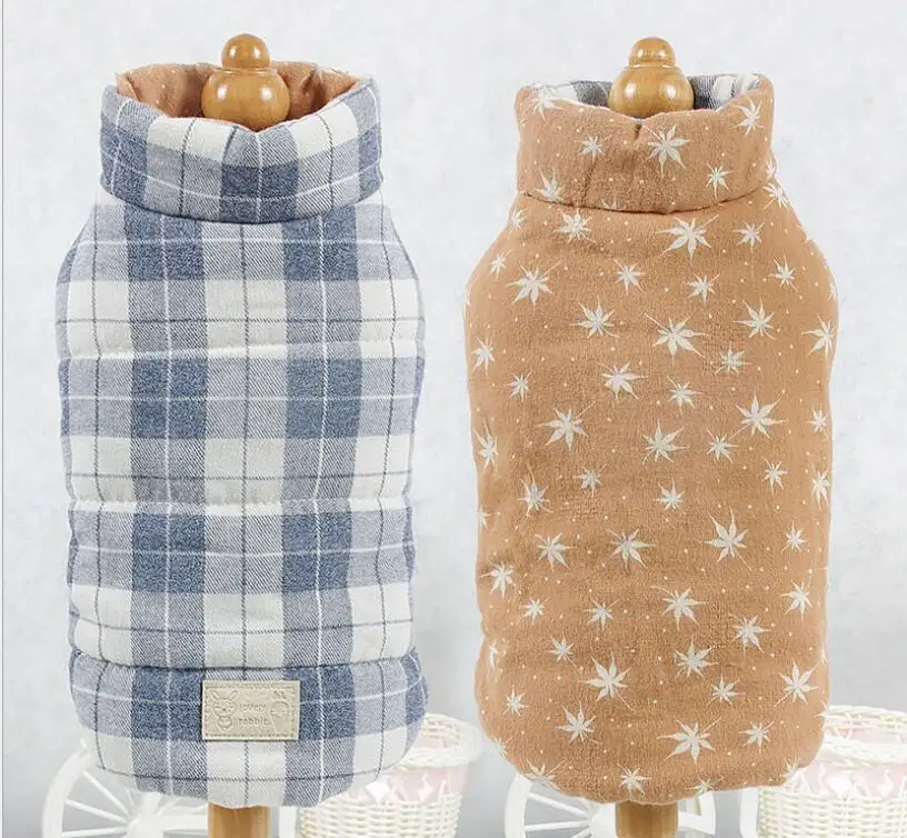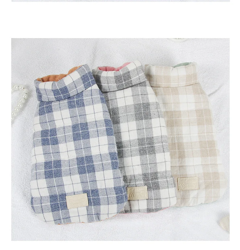 Новинка зимнее пальто для собаки реверсивная Тедди Одежда для кошек мягкий 100% хлопок клетчатый комбинезон для собак одежда XS S M L XL