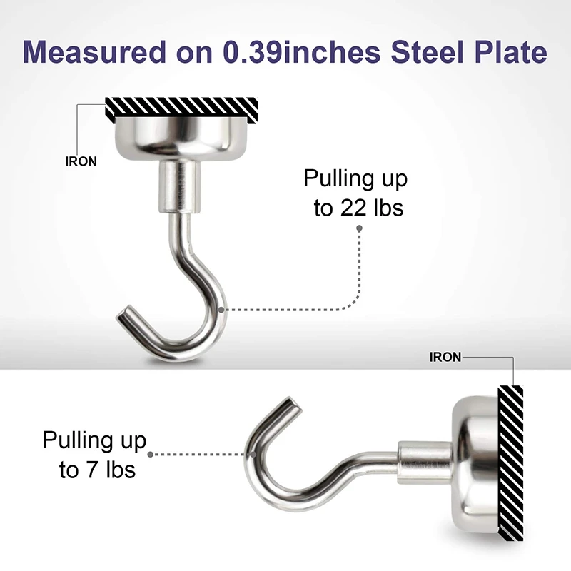 Сверхмощные магнитные крючки, сильный Неодимовый магнитный крюк для дома, кухни, рабочего места, офиса и гаража, удерживает до 22 фунтов-