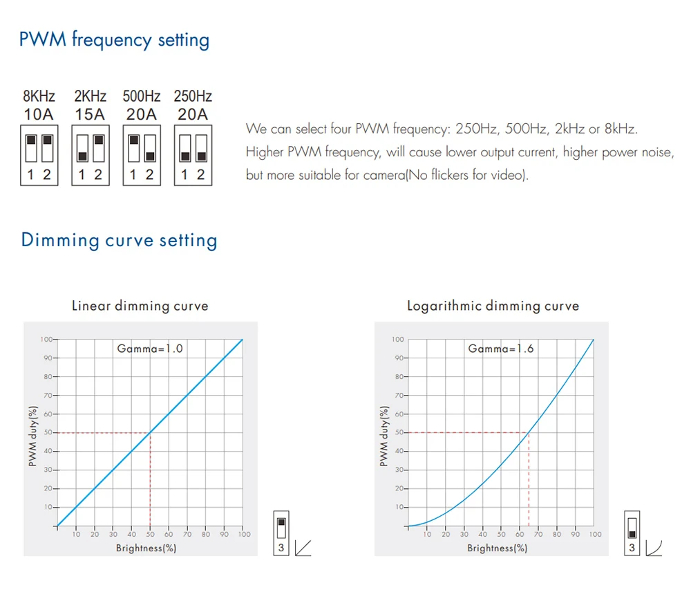Более высокая частота ШИМ, вызовет более низкий выходной ток, более высокий уровень шума, но больше подходит для камеры.