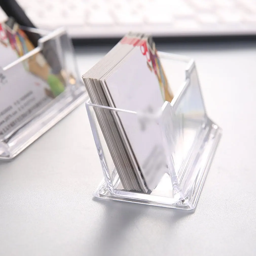Особенности: удобная система отображения литературы. Сделано специально, чтобы повысить вашу видимость в вашем занятом офисном месте и вернуть ваши инвестиции .. Специально разработан для визиток. Характеристики: Размер: 103*43*42 мм Материал: Акрил Цвет: прозрачный Содержание упаковки: 1 * Прозрачный Настольный бизнес держатель для карт