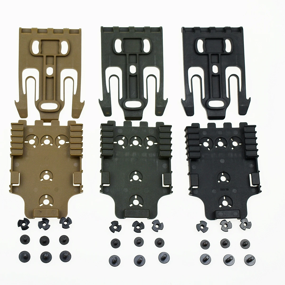 -Материал: полимер -Цвет: черный, светло-коричневый, зеленый -Подходит для обычной кобуры, подходит для сафарилда, не подходит для blackhawk CQC Посылка: 1 * Адаптер кобуры (включая винты) Мужская/Женская пара QLS, показана здесь: Может быть установлен на любой кобуре Safariland/комбинированной задней части, которая позволяет быстро заменить кобуру на другую заднюю часть, содержащую QLS 22 по мере необходимости. Две части, QLS 19 и QLS 22 быстро и легко сползают вместе и блокируют, образуя твердое крепление между кобурой и UBL, тактическая ножка, Молле жилет, автомобильный тире, прикроватный столик или в любом другом месте, где вы устанавливаете пластину приемника.