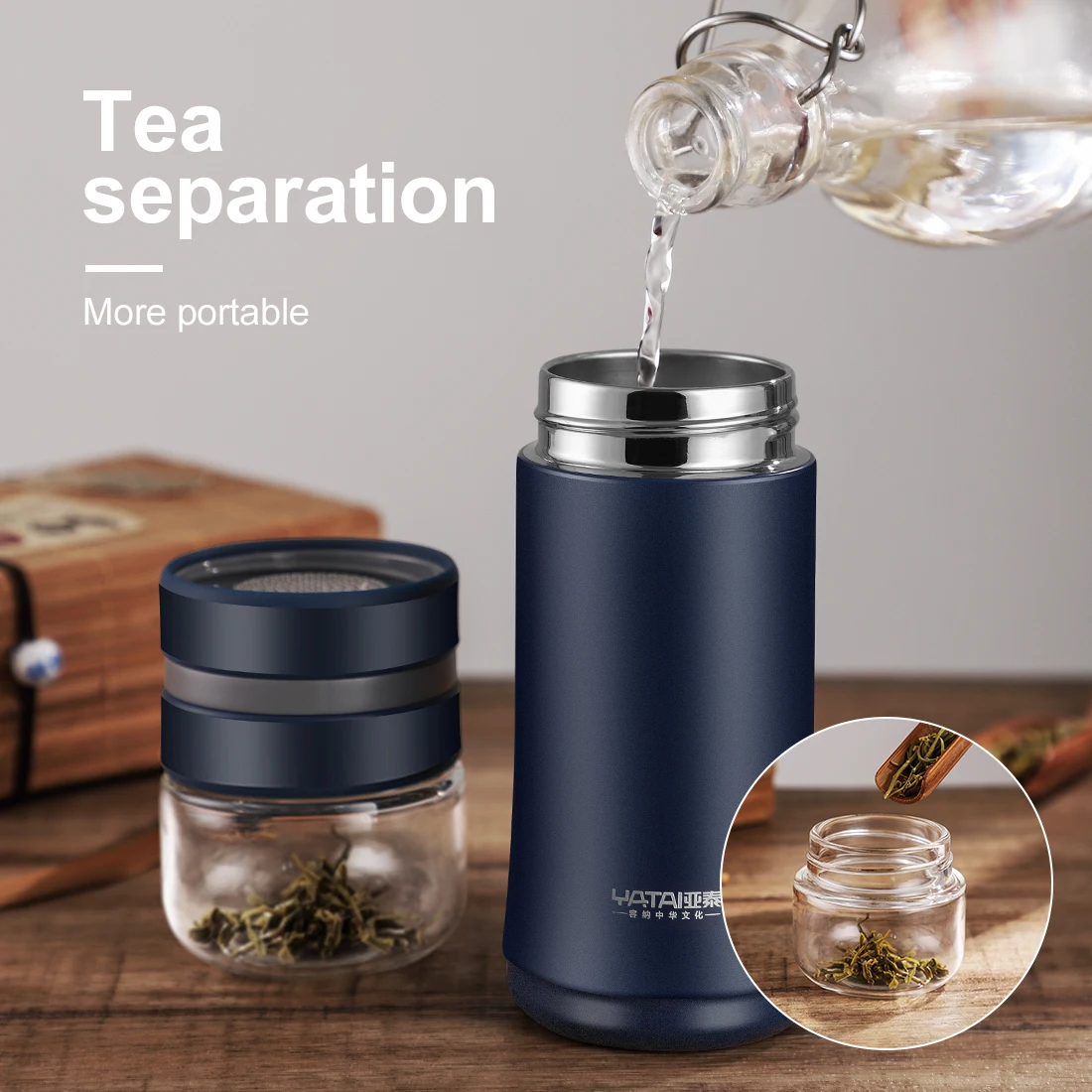 Title:300ml tea separation cups High-grade portable stainless steel thermo sinsulated mug with glass cover with filter men's cups
