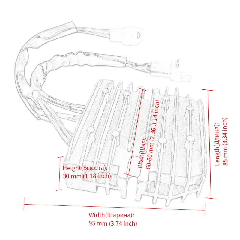 -Регулятор мотоцикла -Входное напряжение: 12 В постоянного тока -Цвет: как на картинке -Размер: 85*95*30/мм (3,35*3,74*1,18/дюйм) -Шаг: 60-90/мм (2,36-3,54/дюйм) Предотвращает перезарядку аккумулятора и улучшает Возможность зарядки С ребрами радиатора для лучшего охлаждения Aftermarket регулятор напряжения мотоцикла выпрямитель Сверхмощный металлическая конструкция Помогает рассеивать избыточное напряжение, предотвращая перезарядку аккумулятора Эффективно улучшить зарядку (кроме устройств Большой дизайн теплоотвода плавники для максимального устранения тепла